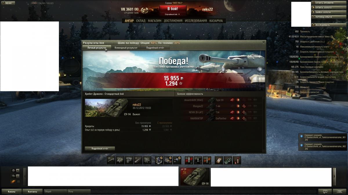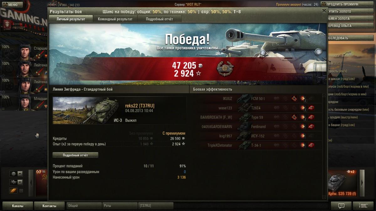Доброго времени суток. Объясните что не так. в акции 15 лет Варгеймингу написано в одной из боевых задач следующее: Боевая задача №2 Цель: игрок победившей команды должен занять первое место среди союзников по количеству опыта, набранного за бой. При этом количество опыта должно быть равным или превышать: 340 единиц — для танков 1–3-го уровней. 700 единиц — для танков 4–6-го уровней. 920 единиц — для танков 7–8-го уровней. 1000 единиц — для танков 9–10-го уровней. Награда: в 3 раза больше опыта для экипажа в данном бою. Сроки выполнения: задача может выполняться неограниченное количество раз. Важно: условия задачи действуют только в случайных боях. Так вот вопрос. Был бой на ИС-3 машина 8 уровня, заработал я на нем 975 опыта без према (1462 с премом). По какой причине тогда не получил утроенного опыта? Бой стандартный, по опыту первый в команде. Жду вразумительных ответов. http://cdn-frm-eu.wargaming.net/wot/ru/uploads/monthly_08_2013/post-1797356-0-88702200-1375599939_thumb.jpg http://cdn-frm-eu.wargaming.net/wot/ru/uploads/monthly_08_2013/post-1797356-0-44543600-1375599965_thumb.jpg