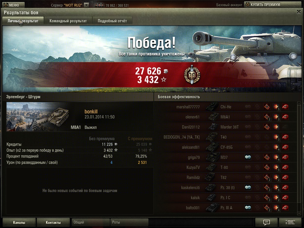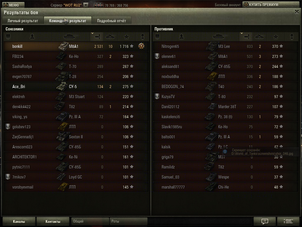 По просьбам телезрителей начал писать реплеи. Бой правда был не особо сложный,я был в топе, да еще и бот один у них. Не сравнится конечно с тем боем где 10-х завалил с 5 ми уровнями и ни одного бота там не было. Но что есть,то есть . http://wotreplays.ru/site/1853590#erlenberg-tytrex77-m8a1
