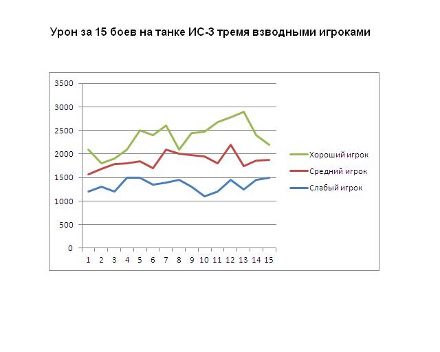 Судя по всему у вас были разные классы техники. У меня же приводится пример на танке ИС-3 у всех взодных игроков. Если же успех в бою приносит сочетание разных классов техники, то это здорово. Мой график лишь демонстрирует скилл каждого игрока на данном типе техники.