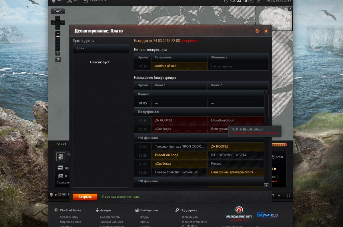 Добрый день! у нас была высадка на ГК Высадка от 24.03.2013 22:00 Плато Игровая карта: Эль-Халлуф RU2 мы дошли до полуфинала и не появились Специальные бои. все команды получили поражение. что в этом случае происходит? http://cdn-frm-eu.wargaming.net/wot/ru/uploads/monthly_03_2013/post-190901-0-12814900-1364158599_thumb.jpg