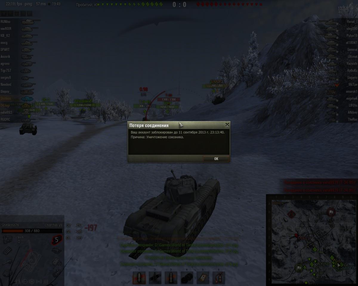 Прошу разобраться по поводу моего бана, никак не пойму куда обратиться правильно. На мой взгляд неправильно работает система бана за дмг по союзникам. Прикрепляю фото для более чёткого понятия возмущения. Написано: "Причина бана: Уничтожение союзников" Насколько понятно из статьи http://worldoftanks..../anti_teamkill/ мне должны были дать лишь штраф... Что это получается??? по факту не убил но забанен за "уничтожение"??