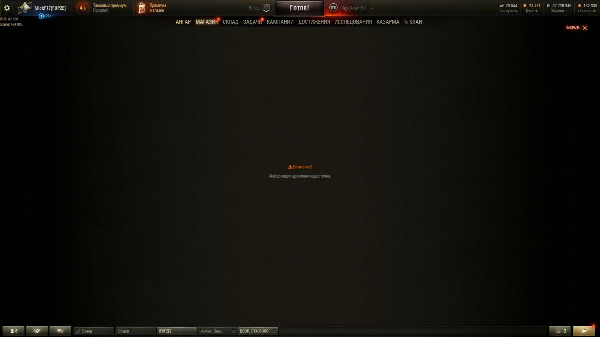 Добрый день. После выбора режима "Линия Фронта" нажимаю на медальку в середине экрана, чтобы посмотреть свои очки доблести. Но вместо этого под меню "Ангар" "Магазин" и т.п. чернота... Клиент без модов (они сегодня слетели). Запускаю игру на всякий случай через WGC с выбором "Запуск без модов". Что делать дальше?