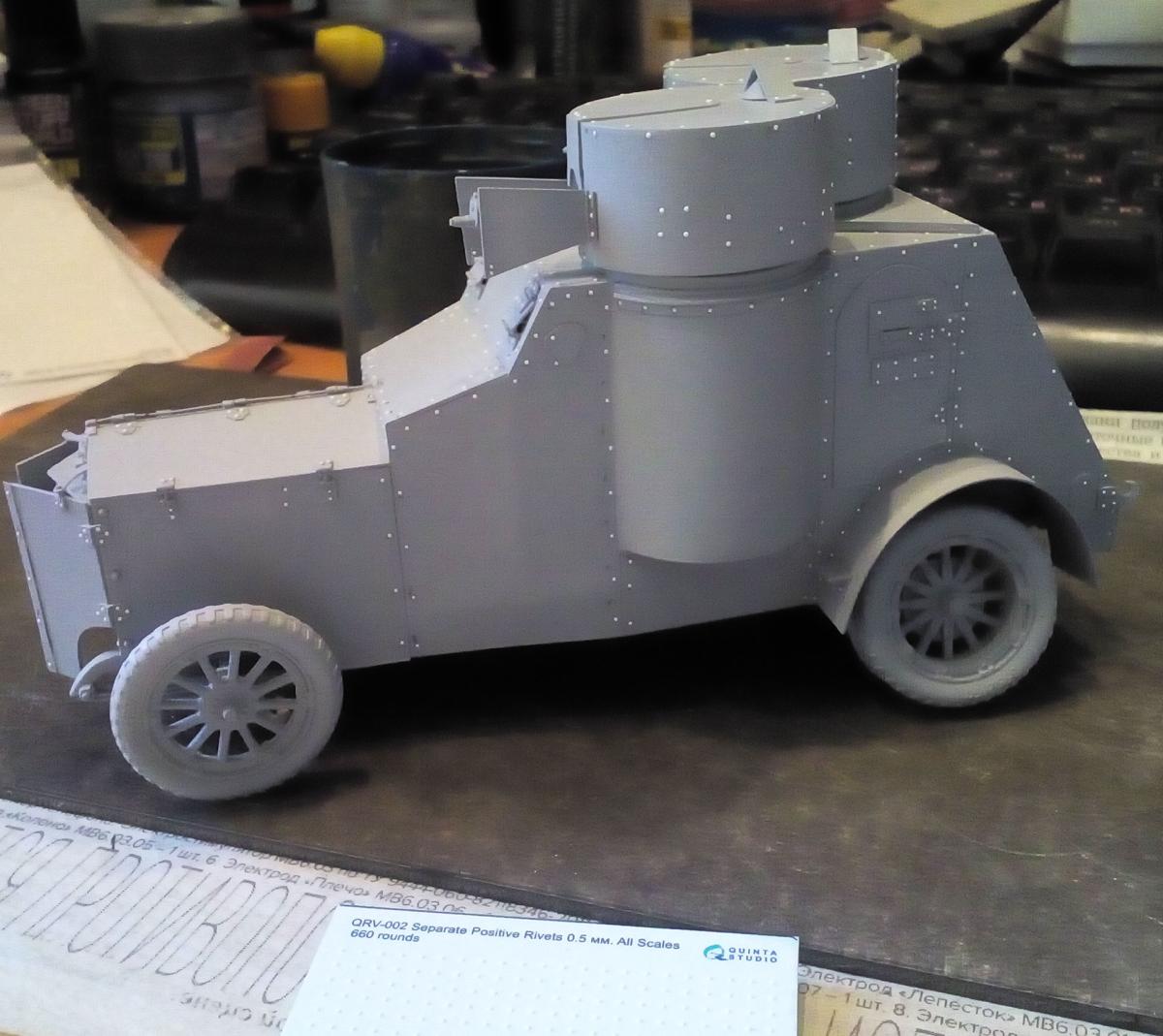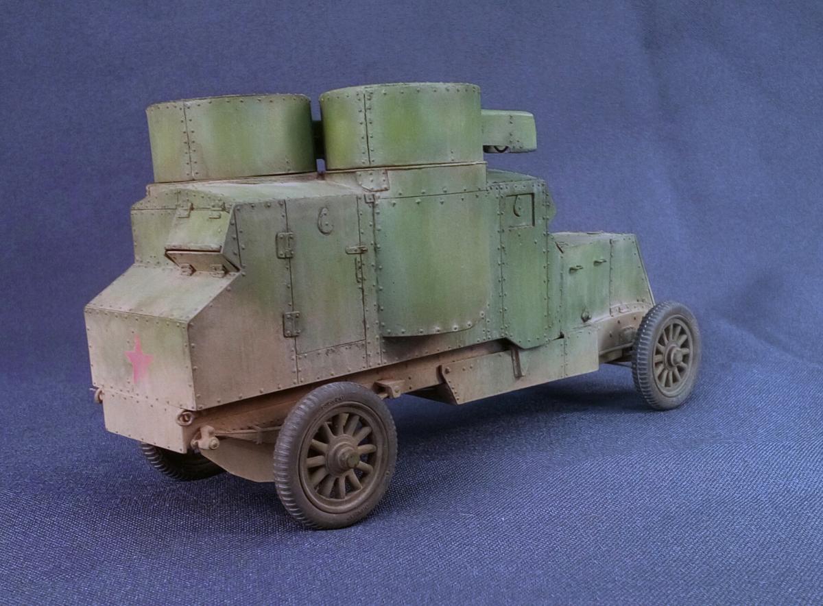 Давно хотел сделать этот броневик, но все откладывал в сторону из-за объема работ. В наличии были только 3д печатные колеса к нему и пулеметы максим, все остальное надо было делать с ноля. Пока болел обдумал с чего начать и как стало получше приступил к работе. В качестве основы для всей конструкции выбрал раму от "убитого" кем-то из детей ЗИС-5В от ВЭ. По сути, получилась глубокая конверсия рамы от ЗИСа с превращением ее в броневик. Для изготовления корпуса и башен использовал листовой полистирол 0,5 и 0,7 мм, а также заклепки от фирмы Quinta Studio. Модель окрашена красками Ганза и тонирована химией от Тамии и АК. Для грязи использовал пигменты от Хасси моделиста. броневик пережил пару падений и ремонтов. Последний ремонт был перед фотографированием. Все сколы краски обыграл под ободранности. Есть задумка сделать с этим броневиком маленькую диораму, но увы, я снова в больнице и все работы откладываются на неопределенное время. Немного истории: Броневик Фиат Ижорского завода был самым массовым и как не странно самым малоизвестным броневиком для большинства граждан. И это несмотря на то, что он есть на массе фото гражданской войны в России, а единственный сохранившийся экземпляр стоит в центральном музеи вооруженных сил в Москве. Выпуск броневика пришелся на 1917-1918гг, но на фронты 1 мировой войны он не попал. В большом количестве он поступил на вооружение автоброневых отрядов РККА и уже, как трофейный к белой армии и национальным армиям бывшей Российской империи и бело чехам. Фиаты ижорского завода воевали и в Сибири, причем с обоих сторон. Они были у частей красной армии в 1918 году, как трофейные в армии Колчака и бело чехов, вместе с частями красной армии входили в Томск, Омск, Ново-Николаев и Иркутск. Они прослужили долго в бронечастях РККА, на 1 марта 1931 года насчитывалось 44 броневика Фиат Ижорского завода.