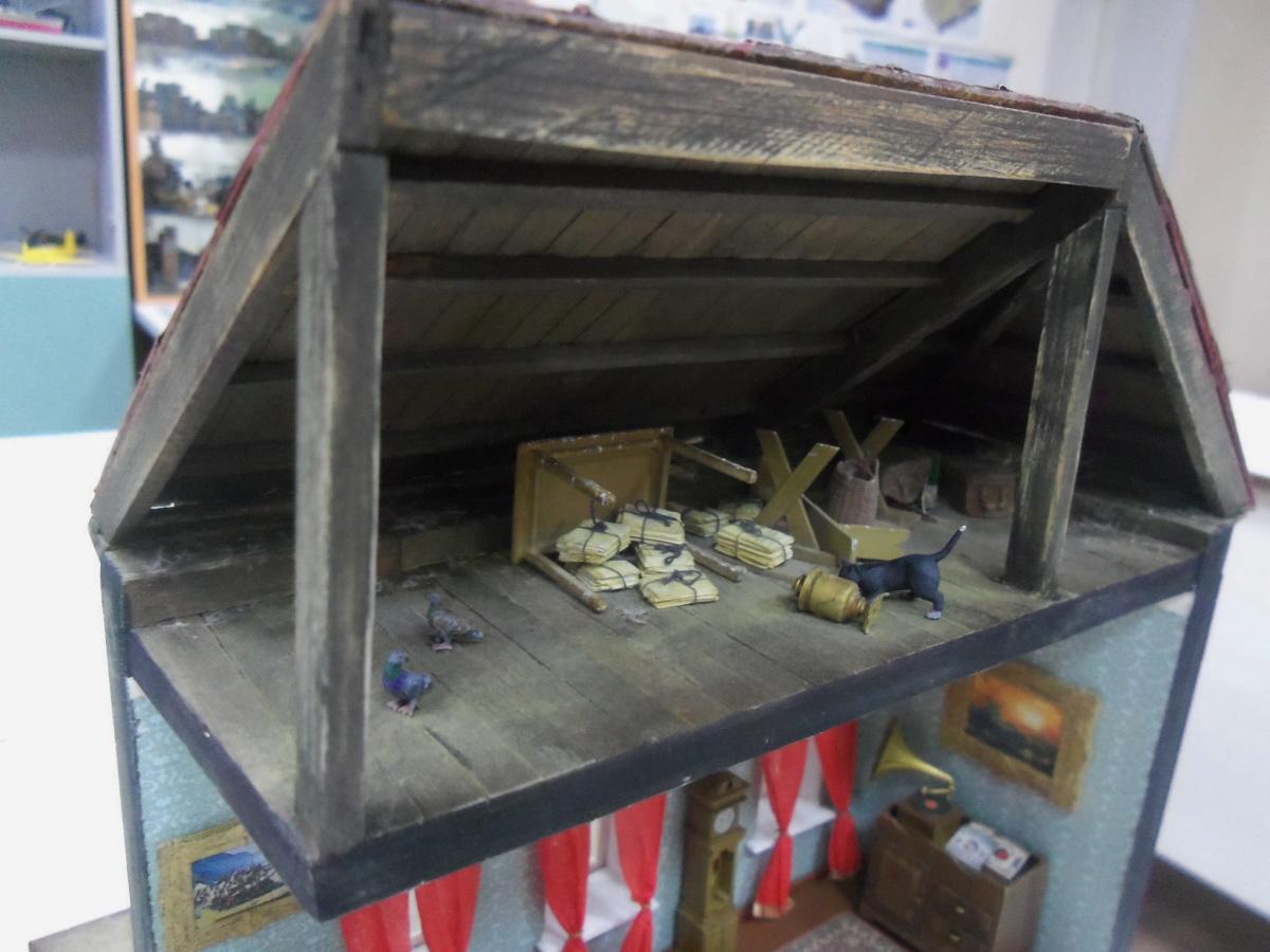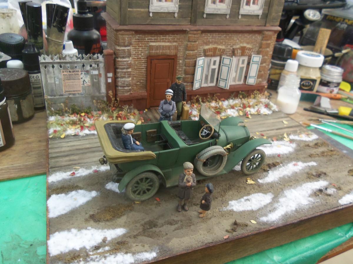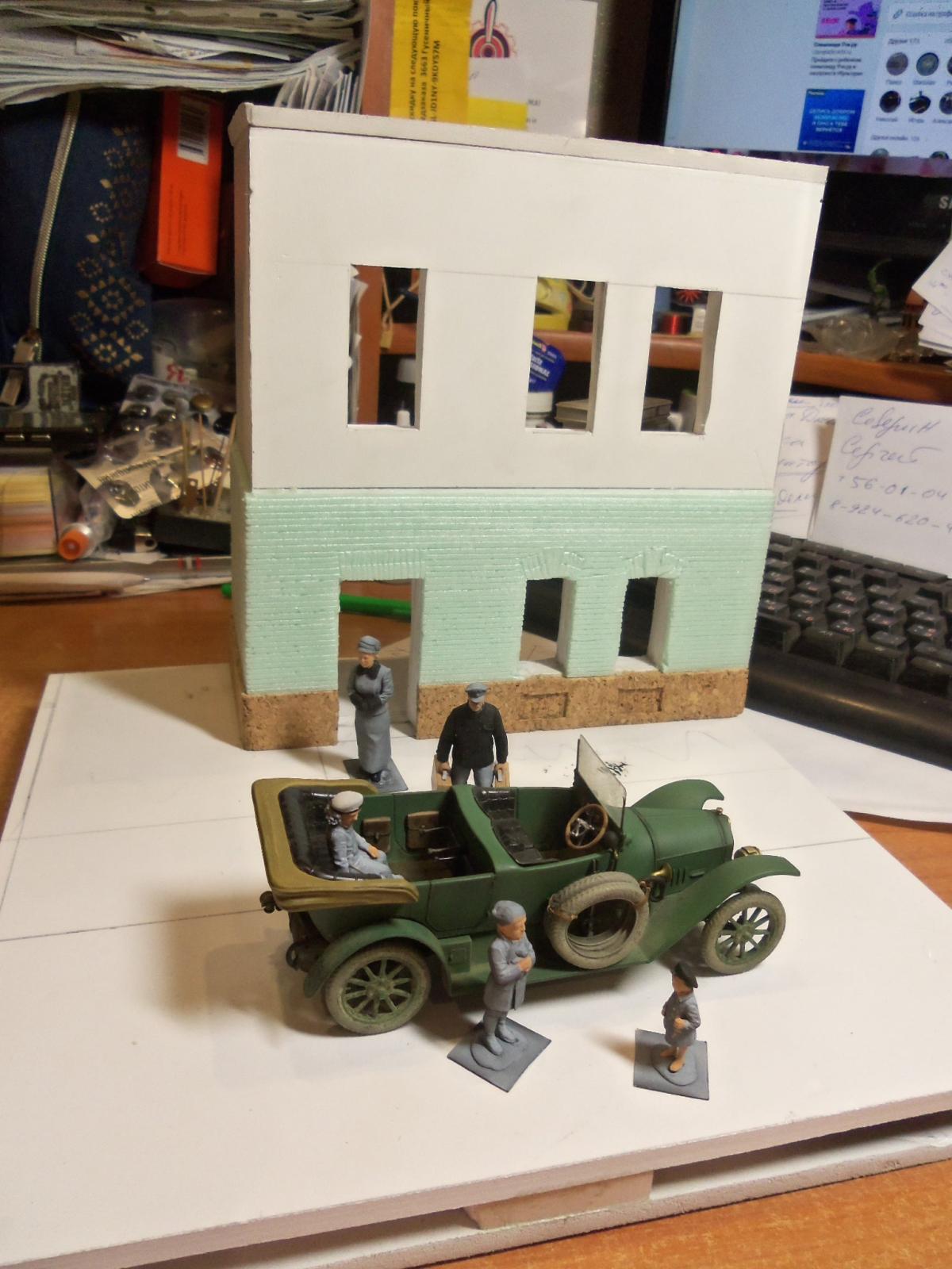 Работу над диорамой начал в июле 2023 года, дважды процесс прерывался из-за болезни. Для создания основы диорамы использовал пеноплекс, пластик ПВХ и березовый шпон. Здание сделано из пластика ПВХ с применением шпона, пеноплекса и сосновых реек и фольги. Отдельно остановлюсь на фигурах, именно с них все и началось. Точнее с босоногого нахаленка в картузе и второго цивильного с медвежонком в руках. Это два мира, это символ того раскола общества, что окончательно произошел в Российской Империи к октябрю 1917 года. Вся композиция диорамы задумана вокруг этих персонажей. Коротко о работе над другими персонажами. Девочка из МиниАртовского набора европейских беженцев 1944г. Заново сделал голову из тамиевской патти и головной убор, а так же удлинил юбку. Мама собрана из двух наборов от МиниАрта и MB. Верх от дамы из набора с пассажирами европейского трамвая, низ от дамы с велосипедом. Ее наряд делал по образу дамы с иркутской кинохроники осени 1919 года, от туда же взял и головной убор мальчика. Шофер из МиниАртовского набора немецких артиллеристов. Из тамиевской патти сделал коррекцию куртки, голову взял из набора от Армы, чемоданы от Бронко, пуговицы сделал из декали клепок от Квинта. Погоны сделаны декалью по моему заказу. Красил стены акрилом от Звезды и краской Моделист. Остальные фигуры окрашены красками Vallejo. Эффекты наносил красками Звезда и смывками от MIG и маслом. Большая часть мелочевки самодельные. Газеты, пластинки, фотоальбом и картины уменьшены в фотошопе и распечатаны на цветном принтере. Мебель очень старый набор от Верлиндена, граммофон 3д печать от ДМС. Чернильница на столе сделана из литника. Добавил: снег, имитация навоза на дороге, птичек(3д печать),