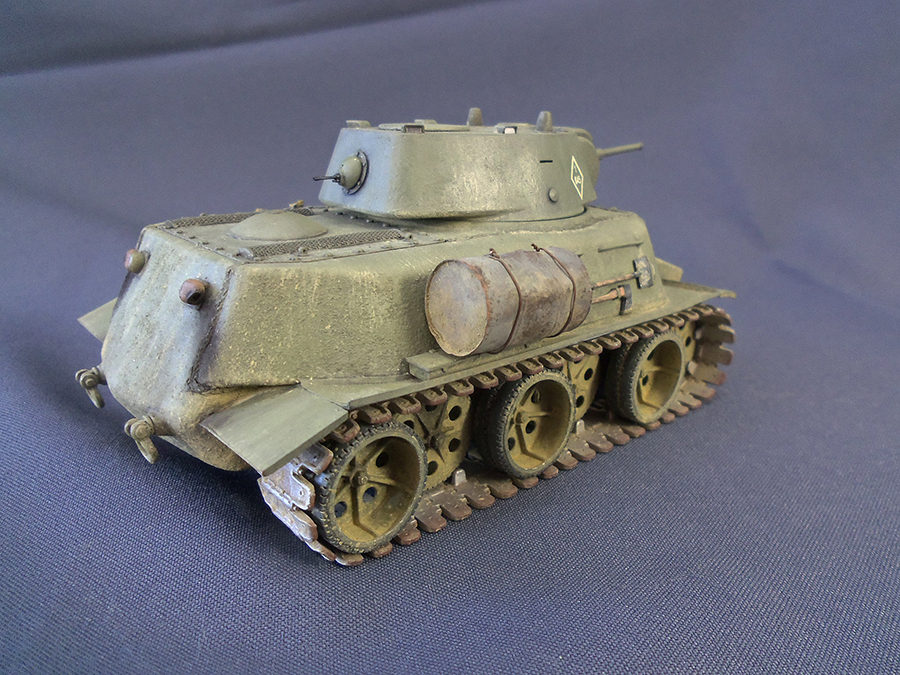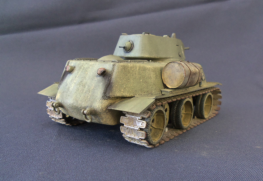 Мототанк МТ-25 Масштаб 1:35. WeBuildTanks(3д печать) Набор полностью напечатан на 3д принтере. Были изготовлены надгусеничные полки. Сделана имитация литой брони. Из пленки от экрана ноутбука сымитировал смотровые приборы. Добавлены вещмешки,звуковой сигнал,коуши, шанцевый инструмент, трос и ящики ЗИП. Бочка изготовлена из фольги. Понимаю, что навеска бочки уже избитая тема, но иного ничего не подошло. Модель покрашена красками АК и тонирована маслом, вещевые мешки покрашены Валехо. Шанцевый инструмент Валехо. Черенки лопаты и топора акрил с уайтспиритом. историческая справка: МТ-25 (мототанк весом 25 т) — проект танка инженеров завода № 200 Городкова Ф. Ф. и Стародубцева А. И. Проект разработан в 1943 году и в виде пояснительной записки к предложению направлен в гбту РККА, где был отправлен в архив на постоянное хранение. Авторы изобретения назвали машину «мототанк» и отнесли его к новому типу боевых машин. https://warspot.ru/7193-mototank-mt-25-posledniy-kolyosno-gusenichnyy