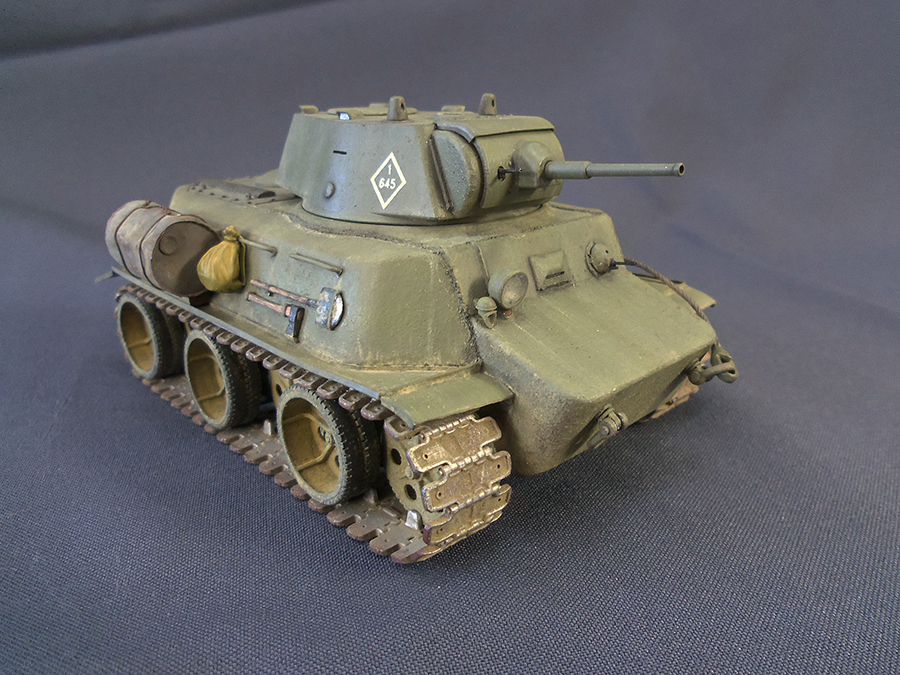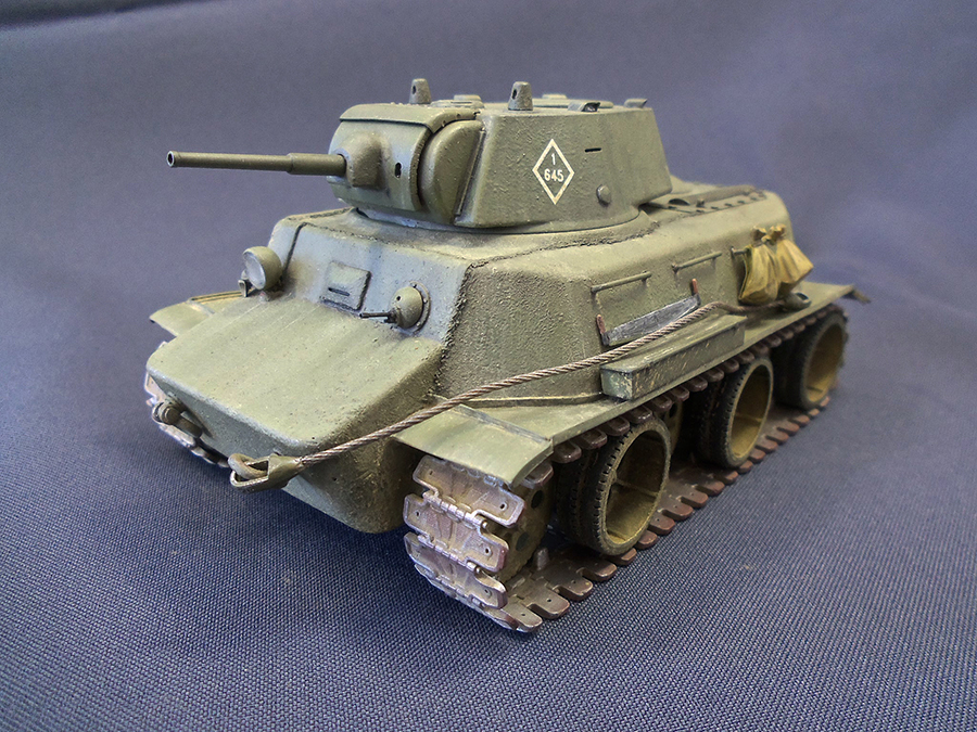 Эта модель появилась почти случайно. Изначально я просто хотел потренироваться в 3D-моделировании, но, нарисовав всю ходовую часть, понял, что доработать всю машину до полноценной модели — уже вполне посильная задача. Корпус был собран из старого листового пластика 90-х годов — другого материала под рукой не оказалось. Желание поскорее завершить сборку и использование старого пластика позже обернулись проблемами: из-за длительного времени работы (почти год — постоянная нехватка свободного времени) пластик местами повело. Особенно сильно деформировались покрашенные, но не закреплённые борта. В итоге пришлось переделывать борта заново. Ходовая часть, башня и вооружение были смоделированы в Blender и напечатаны на 3D-принтере. Корпус выполнен из листового полистирола. Заклёпки — от Quinta Studio, а болты — также нарисованы в 3D и напечатаны. Для окраски был выбран серый цвет — по логике, машина береговой артиллерии, скорее всего, действительно могла быть окрашена в подобный цвет, хотя возможны и другие варианты. Использованы краски Tamiya, а также химия от Hasi Modelist и AMMO by Mig.