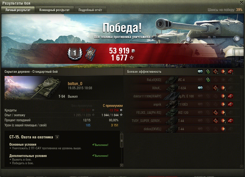 Ура, Ура, сделал. 2 дня мучений прошли, выполнил сейчас СТ15 http://wotreplays.ru/site/5434886#self Все, теперь у меня есть т55а