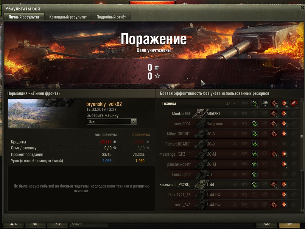 Прохожу с отличчием лбз, столкнулся с такой проблемой, ЛБЗ на т55А ст5 , основное - уничтожить лт в первые 2 минуты боя, дополнительное победить( захват\защита базы, уничтожение врага)+ выжить в бою. вопрос, что не так сделал ?все на скринах, Внимание 2 скрин, все правила соблюдены. лт уничтожен на 1.27 минуте, выжил, команда победила. высветилось что пройдено, однако выйдя в ангар увидел что задание так и не засчиталось, хотя в конце боя высветились все галочки http://cdn-frm-eu.wargaming.net/wot/ru/uploads/monthly_01_2019/post-19190478-0-28415300-1548277103_thumb.jpghttp://cdn-frm-eu.wargaming.net/wot/ru/uploads/monthly_01_2019/post-19190478-0-37994600-1548277147_thumb.jpg