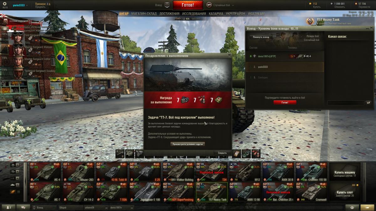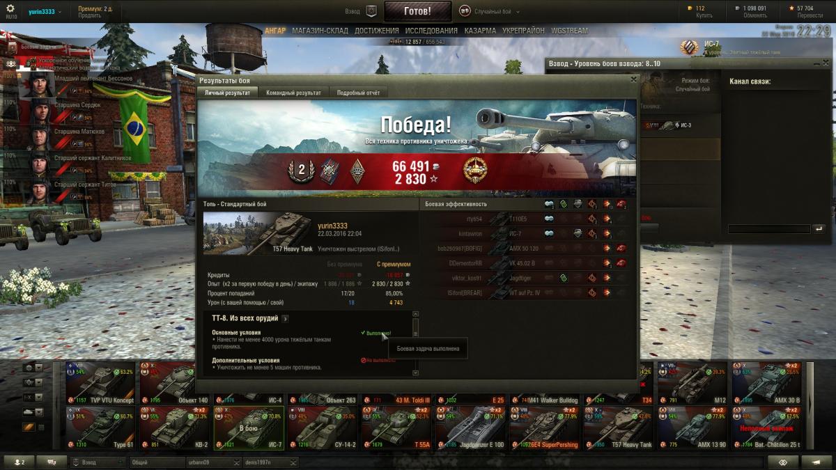 ТТ сегодня само ништяк зашло тт7, тт 11, тт 8 в каждом бою по лбз, хевик и ис 7 тащат, правда пришлось уничтожить союзного т34 который раньше меня встал на захват и по моей просьбе не хотел сходить, подумал что такое случается очень редко когда так свезло