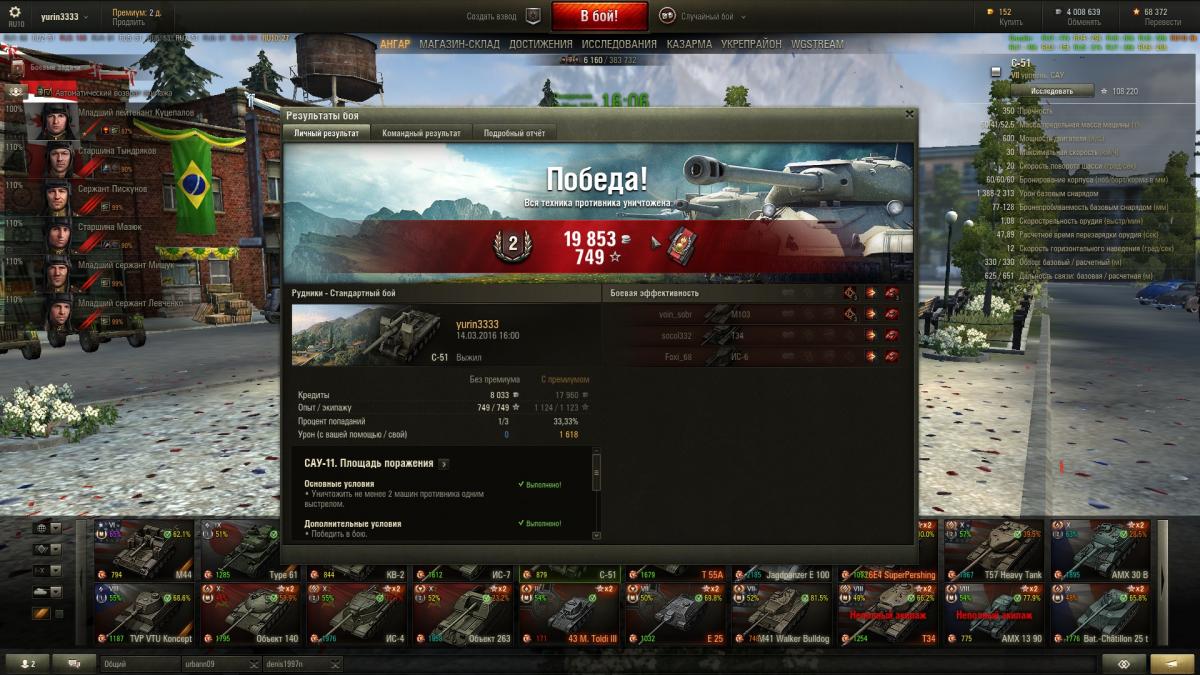 Всем привет вот и у меня сегодня наконец то зашло с отл ст 15, первый раз было без, потому как накидал 5000 по пт и мало было - и меня добрал спик мать его, потом делал ветки сау и тт (они зашли очень быстро) а вот пт 15 это огонь вафли нет, а на яге и 263 должны сойтись все планеты и звезды в одну линию , лт самое первое с отличием потому как я лтшник, а насчет ст 15 всем рекомендую смотреть реплей выполнение с этой точки 100 % главно чтоб были пт http://wotreplays.ru/site/7725238#rudniki-yurin3333-bat_-ch_tillon_25_t И самое главное 260 в ангаре