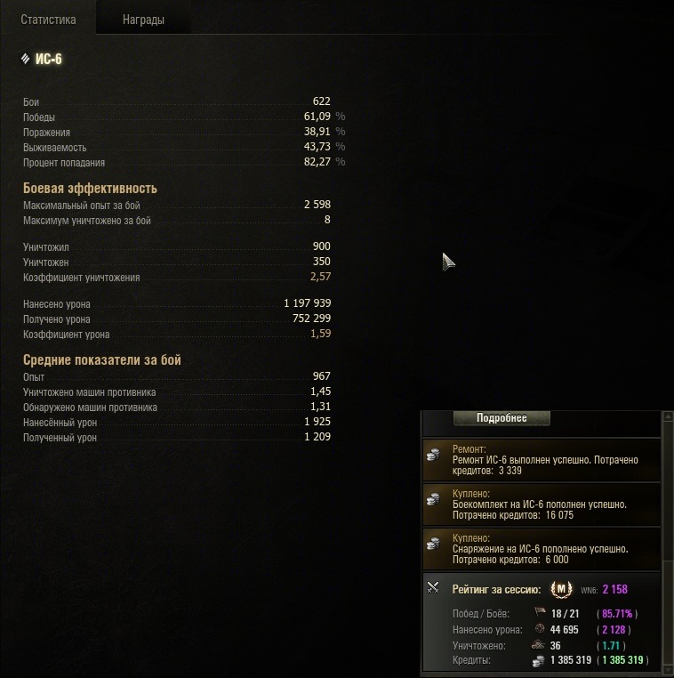 На 112 не играл и не собираюсь, а вот ис6 рекомендую. При нормальном скилле игры машина творит невероятные вещи, фармит как царь и рвет в хлам рандом хоть в топе, хоть в жёпе. Для примера сегодняшняя сессия, практически все откатано на ис6, несколько боев для снятия звезд - активно фармлю на т110е3. Бронепробития хватает, доля голды в общей массе зарядов - около 10-15%, исключительно ради твердолобых пт, типа59 и КТ, с остальными в дуэли не вступаю в принципе.
