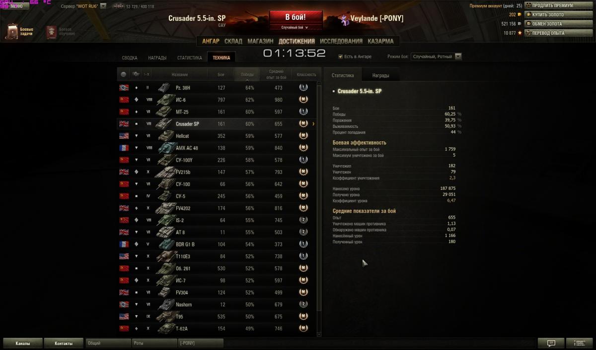Крузадер намного веселее был, а на восьмом уровне - жуткое кидалово. - Вместо маленького и незаметного крузака мы получаем сарай. Многие кусты, в которых можно было поджидать врага в конце боя, уже не про нас. - Комфортная динамика среднего танка с максималкой 40+ кмч в прошлом, теперь мы как тяжик, и по прямой максимум 30 жмем, и в горку ползем вяленько. В итоге там, где крузак уже делал первый выстрел, мы еще только подъезжаем к позиции. - Первые два минуса в совокупности дают третий: габариты и скорость не позволяют держаться близко к линии фронта, остается только стрелять с базы. А это и разброс больше, и полет снаряда в 2.5+ сек. - Несоответствие топового орудия уровням боев, да и вообще, как для артиллерии, пушка у нас худшая на уровне. Да, потенциальный урон у фугасов на 350 выше, чем у крузадера, но по факту это увеличивает наш средний урон примерно с 250-350 до 300-400 - средняя броня у противников тоже выросла. Бронебойные снаряды - отдельный разговор. Во-первых, они хуже лорейновских. Урон 720 против 750 и пробой 185 против 258 (!!!). Во-вторых, наша непредсказуемая пукалка попадает успешно хорошо если в половине случаев, а бронебойные снаряды так еще и в половине случаев будут пожираться гуслями и рикошетить. Кстати говоря, пробой примерно равен ис6, у которого 175, и этого в боях с восьмерками то не всегда хватает, не говоря уже о девятках, а нашего британца так вообще к десяткам периодически кидает. Так что попасть из 4 выстрелов два раза по 400 или один раз на 800 - не суть важно. Только вот фугасец гарантированно что-то снимет, хотя бы гуслю, а вот бронебойный - это совсем рандомный снаряд. Голда так же особо не выправляет ситуацию. Платить 6к за выстрел чтобы иногда сплешем снимать 40 хп при попадании в землю - это совсем мажорство. У предыдущей арты голда хоть лишние 5 пробоя давала. Здесь же полная печаль, не раз бывали попадания в хелката голдой на 400-450 урона. Так что гложет меня тоска и печаль. Откатать 200к опыта до 9 лвл, а потом еще 23к на гусли, а потом 60к до мортиры, ковыряя супостата по 400 урона - это под 500 боев, или 80 часов боли и страданий. Склоняюсь к варианту закинуть голдушечки и апнуться до 10 лвл, нервы не железные.