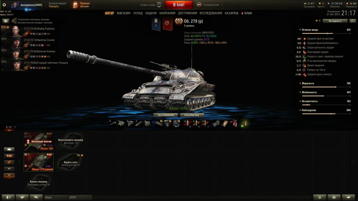 добил лбз 279 пару недель назад. (химеру и эскалибур с отличием все 15 выполнил, в итоге бланков хватило не делать все задачи на 279) делал советы и коалицию, каолицию выполнил полностью без бланков еще до облегчения задач, правда 15-ю не смог в третий раз на мастеров перевыполнить два мастера брал третий ни как не шел. в итоге решил еще одну ветку выполнять, прикинул советы самые простые, кроме задач на танкование и воина, которые закрыл 2-мя оставшимися бланками, за пару дней выполнил оставшиеся 13. с мастерами не стал парится сел на ис-3мз и т-54обр. и в 5 боях мастер и две 1 степени. блок и альянс закрыл бланками. хотя перваоначально 10 задач за альянс выполнил. выехал на этом чуде в дурдом... как же меня пинали по фокусу фугасиками, а артарасам, как красная тряпка на быка, скатал 5 боев со средухой 1,6к, игарьки просто толпами упырываются убить 279. ну или я совсем разучился на тт-10 играть, у меня на сомуа 2к средний урон, а тут на 10-ке даже до двух не дотягиваю ггг. подожду может фугасы переделают и арту ограничат, тогда покатаю, а так только сгоревший стул. стоит теперь памятник комунизму в ангаре вместе с другими дедами в ожидании чуда. http://cdn-frm-eu.wargaming.net/wot/ru/uploads/monthly_10_2019/post-1933121-0-47702000-1571932692_thumb.jpg