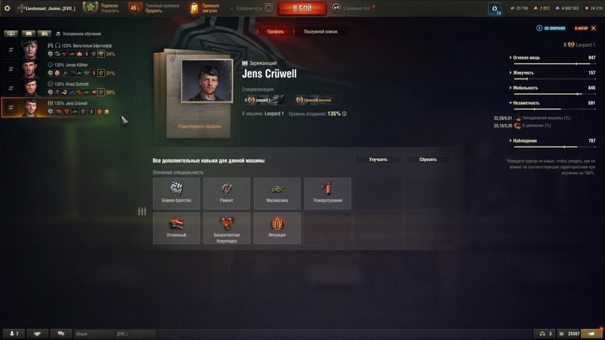 Здравствуйте. Подскажите, можно ли сделать так, чтобы ускоренное обучение было на других членах экипажа? У заряжающего, как вы видите на скриншоте, все перки уже использованы, а у других ещё нет. Тем не менее, ускоренное обучение на нём. Зря используется(не работает).Спасибо.