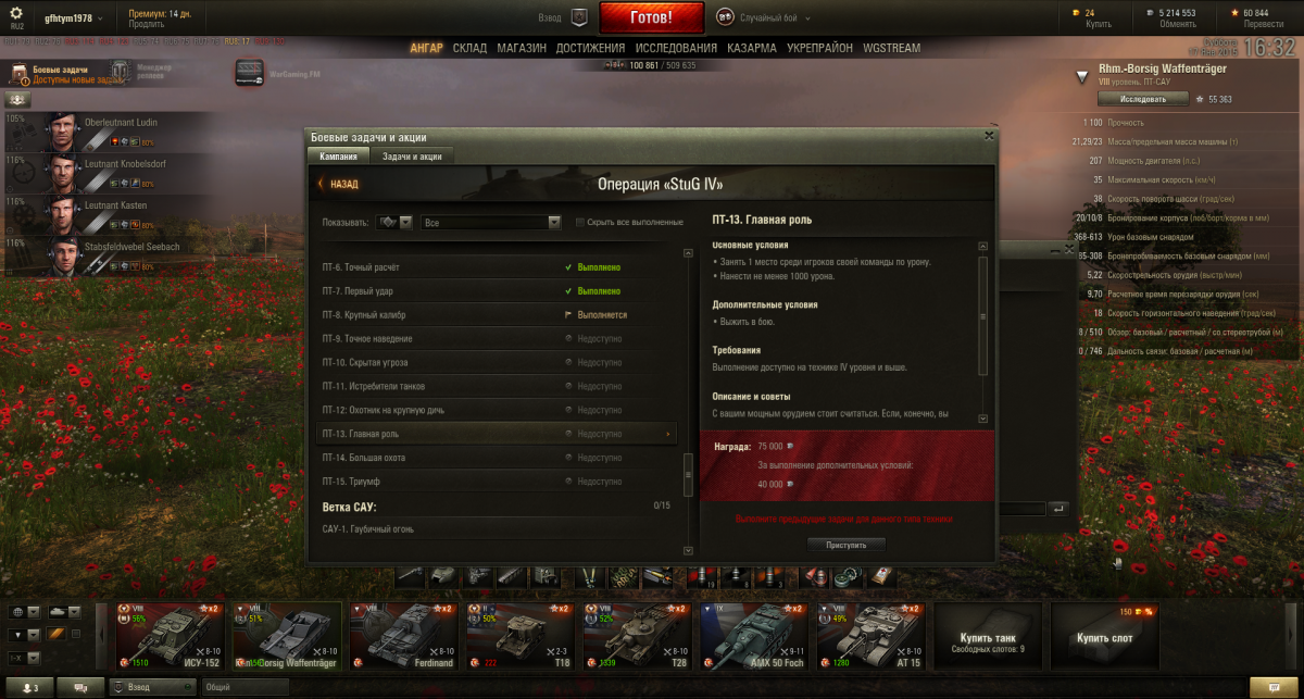 СТ4- в зачет идет, сбил гуслю и урон этим же снарядом, только точно, а не "вроде да"