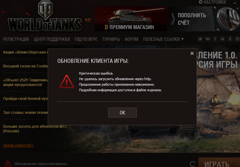wot критическая ошибка не удалось загрузить обновление через http...