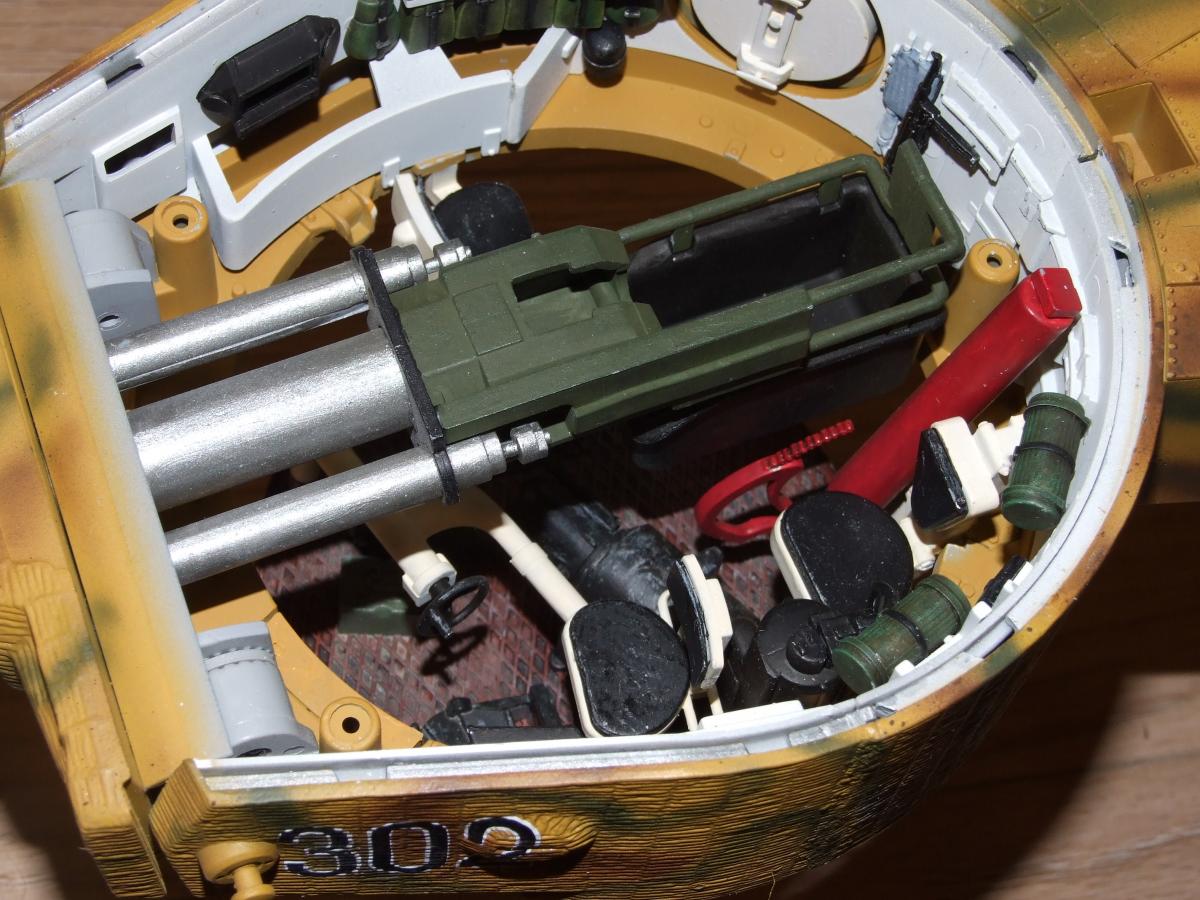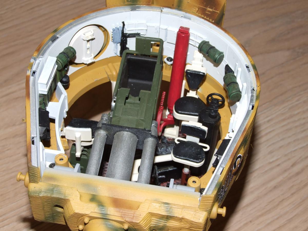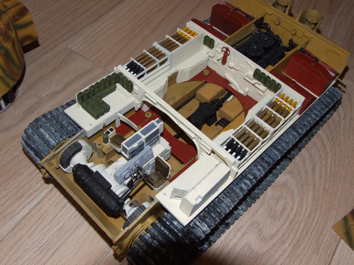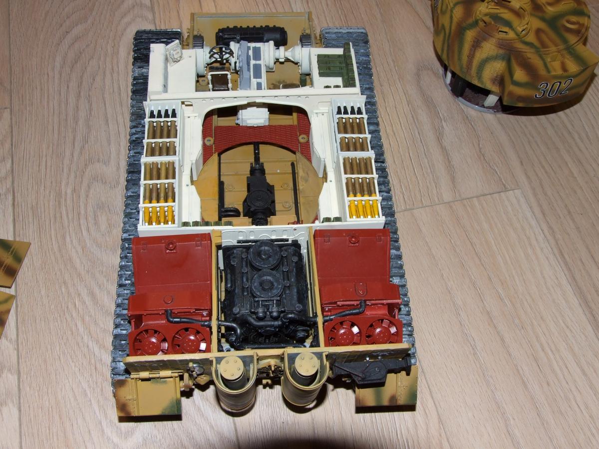Так у меня он и заявлен в названии, как наглядное пособие, а не как очередная еще одна модель Тигра. Их и так уже достаточно. А что насчет труда по ней, позвольте не согласиться. Намаялся я с ней столько, чт за это время мог собрать несколько диарам с пластмассовыми 1:35. Уж поверьте.Только одних снарядов обточил, подогнал, шпаклевал и т.д. 64 шт. Тем более в масштабе 1: 16 делать "обгадинг" и ляпать глину...как то не очень. Пошло будет смотреться. Расчет был именно на музейный вариант. Тем более, что стоит он не на имитации грунта и привязки к земле не имеет. Насчет покраски.. странно, что есть вопросы. Она соответствует 100 проц. Не верите мне полазайте по справочникам окраски Тигров. Я полазил и еще полазил и еще. Попробуйте так просто найти примеры правильной цветовой маркировки снарядов к нему. Так что все соответствует - не фэнтази. А вообще эта модель делалась фирмой по Тигру из французского музея г. Самюр