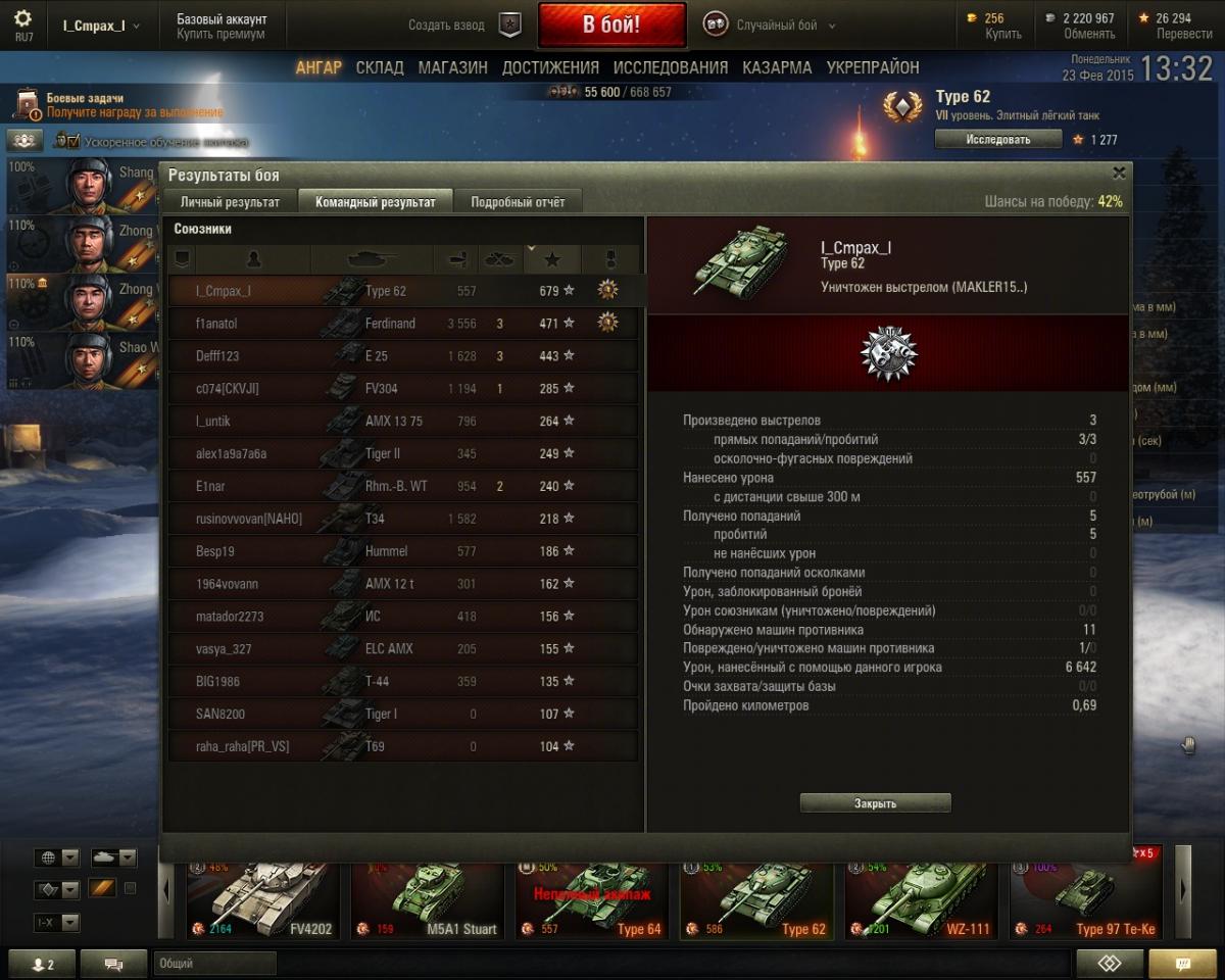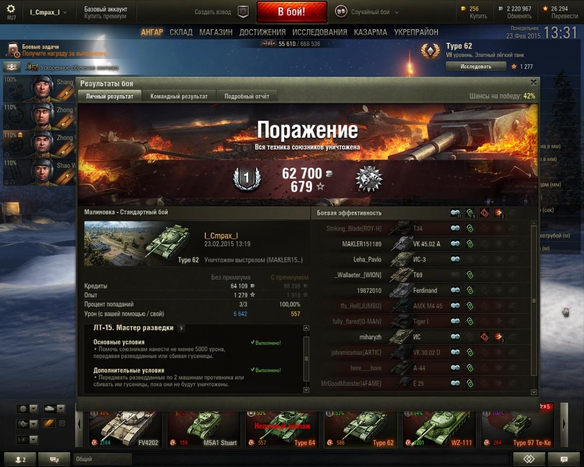 Осталось сделать один выстрел! и я выполнил бы ЛБЗ СТ 15 и получил бы Т-55А, попросил по человечески, но ***, нашлась такая тварь, которая..... http://wotreplays.ru/site/6578887#pereval-i_cmpax_i-amx_chasseur_de_chars