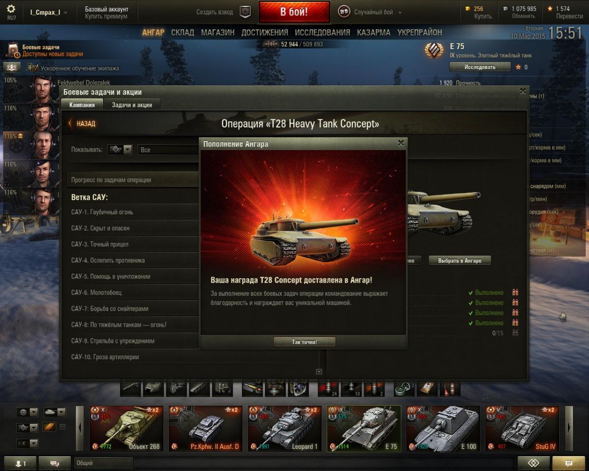 Все 15 задания на Концепт прошел сразу , кроме тт15, тт12 и ту сделал на е 75, но эта же.....(поплакался, может повезетhttp://cdn-frm-eu.wargaming.net/4.3/style_emoticons/wot/Smile_Default.gif)