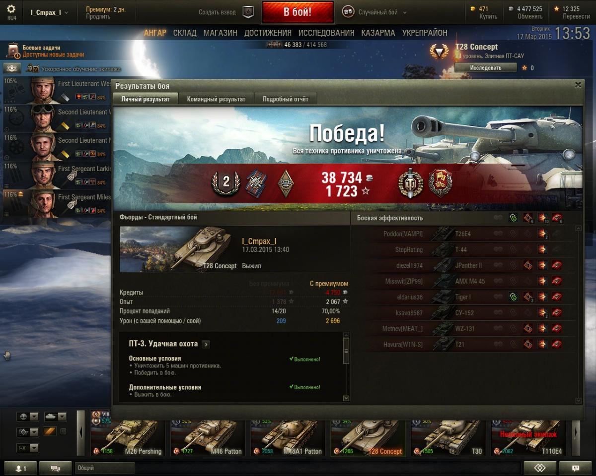 Парни! Стоило вчера поплакаться, что никак не идет ТТ15, как сегодня я эту задачу выполнил! Т28 НТС в ангаре! Ухожу на ветку Т55А ! http://cdn-frm-eu.wargaming.net/4.3/style_emoticons/wot/Smile_Default.gif