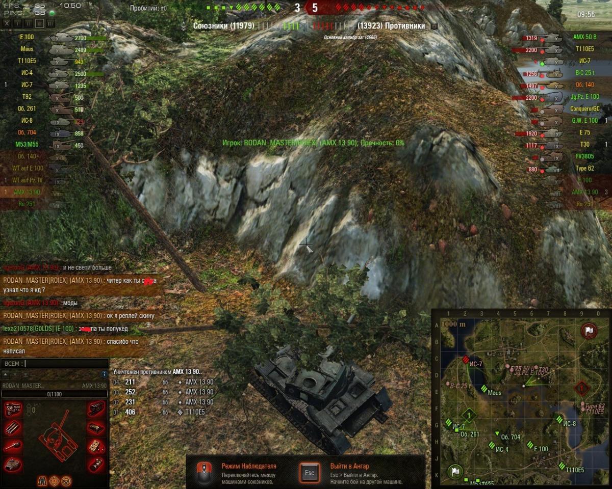 Я играл на 13 90 высадил 3 пульки , и решил перезарядится (у меня около 600хп ) , и тут на меня вылетает 13 90 (со 100хп) , я пишу в чат как ты узнал что я кд ? он говорит моды . Насколько я знаю мод который показывает кд противника запрещен , могул ли за это забанить его ?http://cdn-frm-eu.wargaming.net/wot/ru/uploads/monthly_02_2015/post-19828001-0-14440500-1423645381_thumb.jpg