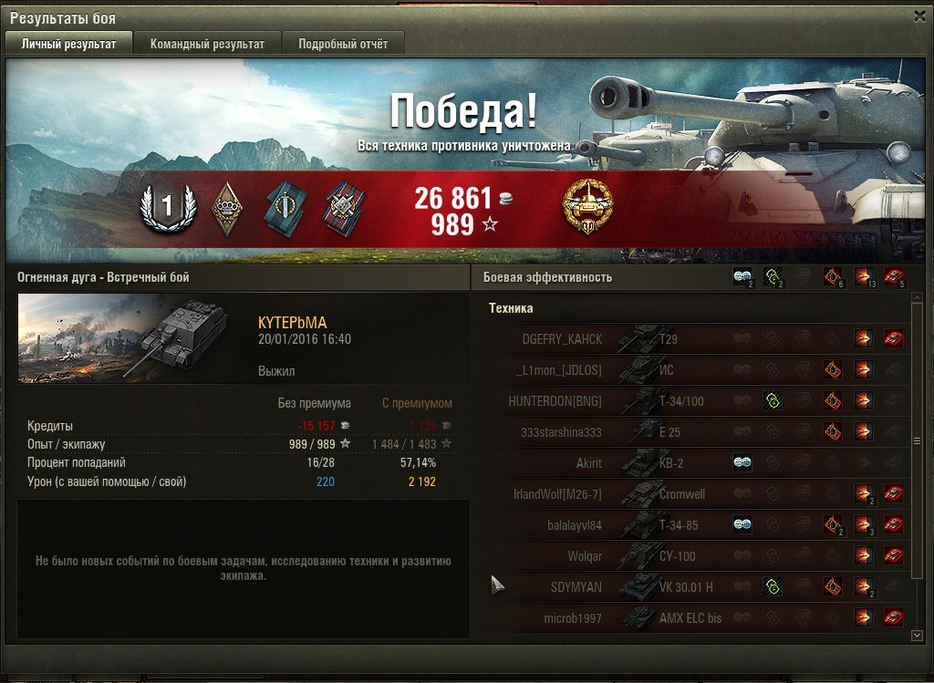 2 3B0H я так понимаю, вы меня поняли со своей "колокольни": для вас главное показать, что все танки хороши, если есть скил как у вас? Да нет у меня никакого скилла,средненький я игрок,а главный посыл прост-если у тебя мало или даже очень мало боев на технике или просто тебе не зашел даннный танк-не надо сюда приходить и разводить вайн про какое уг эта техника.Той же эльфионе хватило 2 боя на штуге,чтобы заявить что штуг ведро с болтами И соответственно для тех, кому нужна классическая кустовая ПТ для стрельбы с дальней дистанции - этот танк - проходной. Но не потому, что плохой, а потому, что стиль игры близок к активн Да чтож вы какие ленивые,что даже лень скрины посмотреть например в посте 2603.Как и все пт сковорода может танковать и рашить с одноклассниками и кустодротить со старшими.Что собственно и нужно делать 2 MUHOTABP_2 Играется сковорода с обоими орудиями на ура.Последнее время катаю ее с топом,но начинал с л70