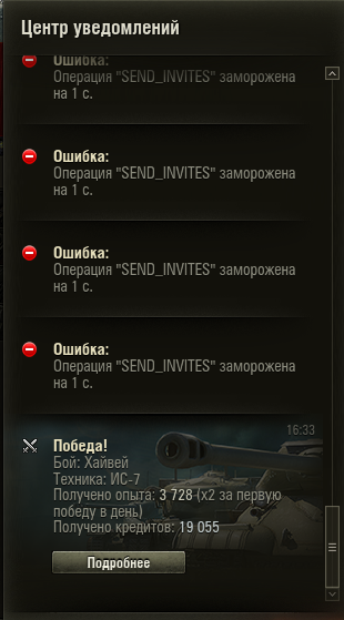 Практически после каждого боя в уведомлениях вот такая фигня http://cdn-frm-eu.wargaming.net/wot/ru/uploads/monthly_05_2015/post-20212342-0-45629200-1432994302_thumb.png Конечно не смертельно, но как-то подзаколебало. Может кто встречал такое? Подскажите как избавиться, Заранее благодарен!