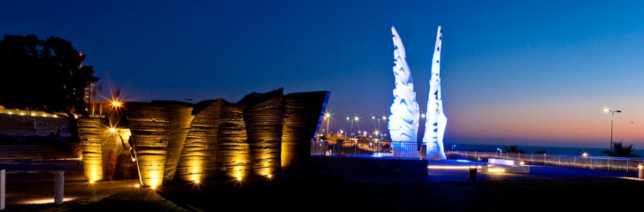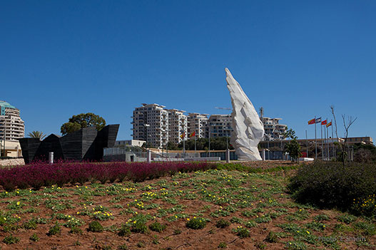 Монумент победы Красной армии над нацистской Германией ивр. אנדרטה לציון ניצחון הצבא האדום על גרמניה הנאציתангл. Victory Monument in Netanya Страна Израиль. Город Нетания. 32°18′08″ с. ш. 34°50′36″ Мемориал состоит из двух частей, символизирующих переход от тьмы к свету, связывающих победу Красной Армии над нацизмом с прекращением Холокоста и последующим воссозданием еврейского государства. Вторая мировая война скульптурно представлена в чёрном бункере. Справа представлена Катастрофа европейского еврейства, а слева основные сражения Великой Отечественной войны, начиная с 22 июня 1941 года, и до её конца 9 мая 1945. Вторая часть композиции представляет собой два белых крыла, символизирующих победу, надежду и память. Аллегорически эта часть соотносится с «Журавлями». Мемориал создан авторским коллективом из России — Салават Щербаков, Василий Перфильев, Михаил Народицкий. Возведением руководил нетанийский скульптор Хен Винклер. Мемориал находится на побережье Средиземного моря, неподалёку от мемориала павшим воинам Израиля «Яд ле-Баним», памятника израильским артиллеристам, памятника бригады «Александрони» и памятника еврейским беженцам из Словакии. Официальный сайт http://www.netanya.muni.il/?CategoryID=2453 Художники фотографы: Dr. Avishai Teicher, E. Shtern. http://guide-israel.ru/attractions/51432-pamyatnik-pobedy-v-netanii/ https://ru.wikipedia.org/wiki/%D0%9F%D0%B0%D0%BC%D1%8F%D1%82%D0%BD%D0%B8%D0%BA_%D0%9F%D0%BE%D0%B1%D0%B5%D0%B4%D1%8B_(%D0%9D%D0%B5%D1%82%D0%B0%D0%BD%D0%B8%D1%8F) https://www.votpusk.ru/country/dostoprim_info.asp?ID=25783