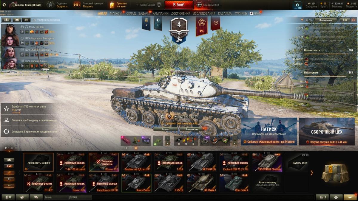 1-я сборка (ЛТ) - КОП (в профильный слот) + Оптика (Трофейка или боновая) + Глушитель (лучшей трофейный) + инструкция на маскировку + доппай. Модификации 2-2-2-2 (Профслот - Разведка). По экипажу - Ремонт берется не ранее 6 перка. Для мехвода - 7-ого. Пожаротушение не берется вообще. 2-я сборка (СТ) - по вкусу. Я гоняю турбо-СТ, т.е. турба+гусянки+стаб+2 ремонта. А по факту - система мобильности Т3 + гусянки + боновый стаб + инструкция на поворот + 2 ремонта. По пробитию. Дело не в пробитии! Дело в орудии от Леопардо-подобных которые крайне критичны к полному сведению! Тут вплоть до секундомеров сведения чтобы переучиваться. Я серьезно. Снайперский режим тоже нужен именно для этого. Тчк. p.s. <<<<<<=========== Тот самый извращенец-гибридовод, который первый придумал, публично, катать Кунца в ЛТ. См начало этой темы - http://forum.tanki.su/index.php?/topic/2130112-kunze-panzer-%d1%81%d1%82%d0%b0%d1%80%d1%82%d0%be%d0%b2%d0%b0%d1%8f-%d1%82%d0%b5%d0%bc%d0%b0/page__st__280__pid__55123576#entry55123576 и http://forum.tanki.su/index.php?/topic/2130112-kunze-panzer-%d1%81%d1%82%d0%b0%d1%80%d1%82%d0%be%d0%b2%d0%b0%d1%8f-%d1%82%d0%b5%d0%bc%d0%b0/page__st__480__pid__55299570#entry55299570