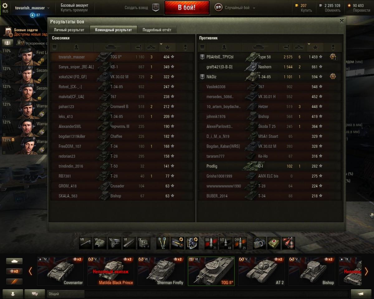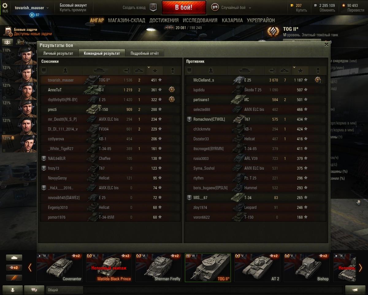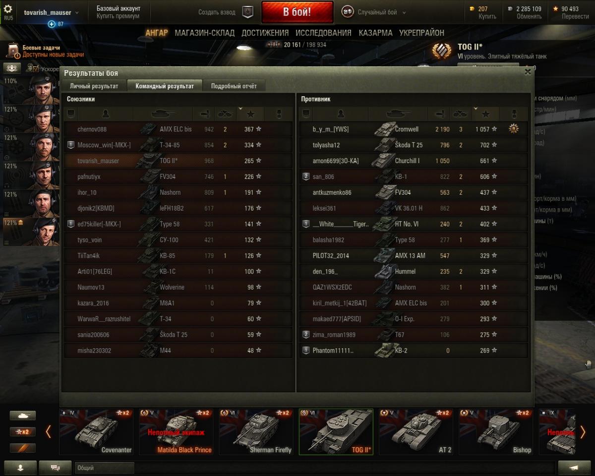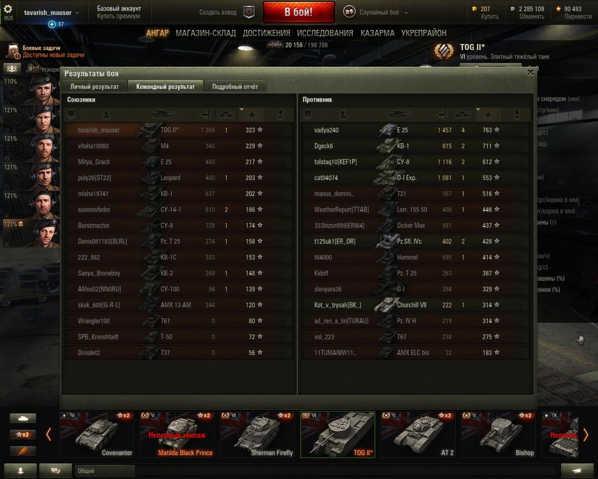 Решил провести небольшую сессию, прибавив к теории, так сказать. Провел 5 боев, больше не смог из-за сливов на этой "имбе", ибо только одна победа, и то - на встречке, где логика боя теряется еще больше. http://cdn-frm-eu.wargaming.net/wot/ru/uploads/monthly_08_2016/post-20599493-0-66337600-1472626904_thumb.jpghttp://cdn-frm-eu.wargaming.net/wot/ru/uploads/monthly_08_2016/post-20599493-0-01911700-1472626961_thumb.jpghttp://cdn-frm-eu.wargaming.net/wot/ru/uploads/monthly_08_2016/post-20599493-0-08486900-1472626992_thumb.jpghttp://cdn-frm-eu.wargaming.net/wot/ru/uploads/monthly_08_2016/post-20599493-0-23109300-1472627013_thumb.jpghttp://cdn-frm-eu.wargaming.net/wot/ru/uploads/monthly_08_2016/post-20599493-0-28023400-1472627045_thumb.jpg Выводы. 1. В трех из пяти боев есть бишоп/фунтик (про общее силье арты можно и не упоминать). Это мало и нет взводов, потому что время утреннее и 5-й серв, он по впечатлениям самый демократичный в этом плане. Вот вечерами на 1 и 2 сервах жарище. 2. Собственно, победы, их количество и моя роль в команде. все очевидно. В последнем бою в тундре не успел даже за камешком возле базы от арты спрятаться, куда сразу поехал, увидев тенденцию союзничков. 3. Фарм. За 5 боев +49к, без прем акка, голду использовал только в одном бою (6 выстрелов). Исходя из этого отрезка можно ли сделать вывод, что тог желателен для приобретения ради побед, фарма сребра, веселого гемплея? И это с трехперковым экипажем, а если новичок посадит 75% бомжей, как я на заре сосисочной юности, по заслугам оценив "потрясающее орудие"? Бывает, когда прем выводят из продаж из-за его имбовости, а иногда его убирают, потому что он... тог Стоит его брать новичку? Однозначно - нет. Брать ли его для прокачки экипажа британской ветки - очень сомнительно. Фарм? Только если не дрожишь над статой. Его можно брать уже на готовый экипаж, с прицелом на опытный тоговзвод, когда обычное, "адекватное" бытование в игре наскучило и захотелось острых ощущений, очень часто в нижней части туловища.