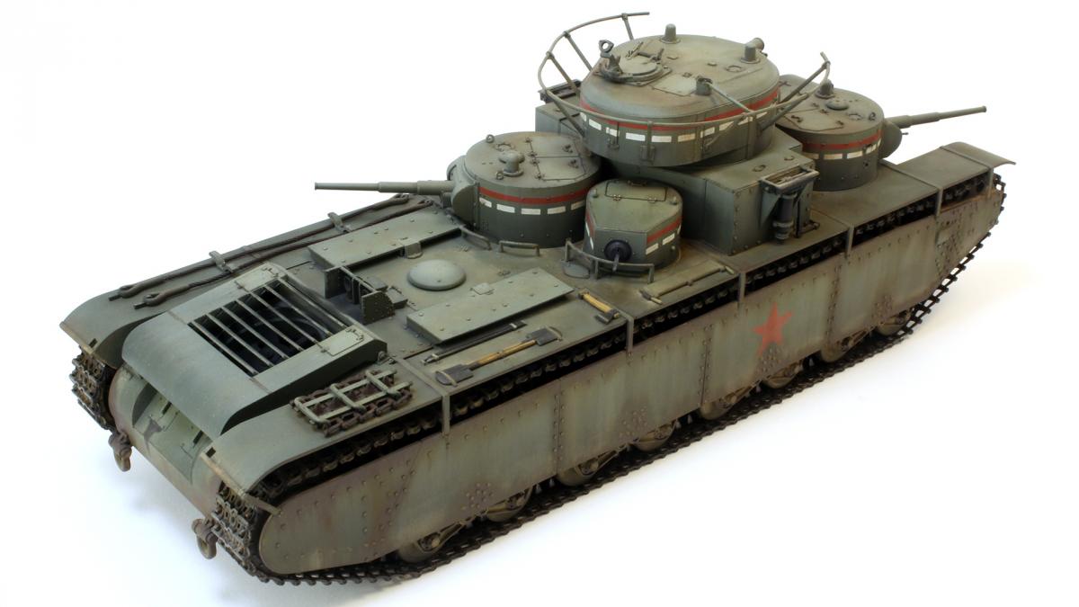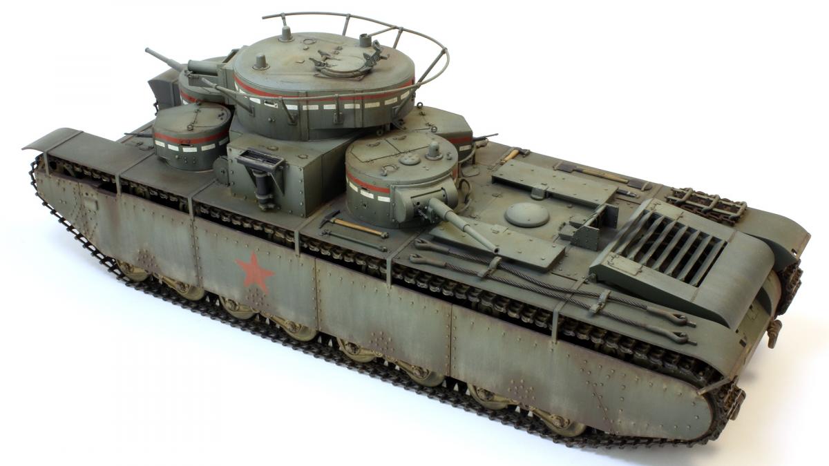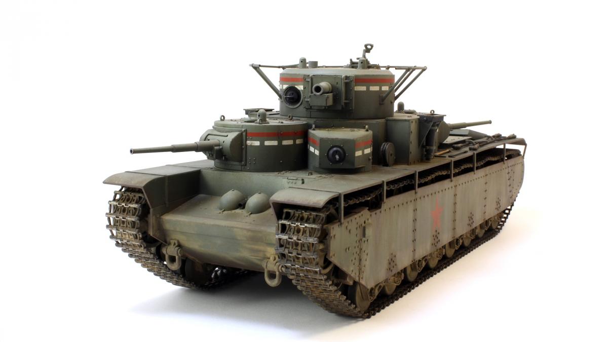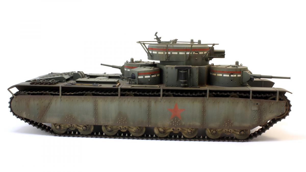Т-35 от Звезды. Надеюсь, туда выложил, или если танка нет в игре надо было в "проекты не связанные с wot"? Доработки: Просверлена поручневая антенна, оптические приборы; Траки MasterClub MTL-35035; Стволы 45-мм орудий ABR35-L112; Тросы Eureka Использованные материалы: Базовый цвет корпуса: AK Interactive RC077 ZB AU Basic Protector (Зэ Бэ, Карл!!!); Для высветлений: Tamiya XF-2 Flat White + Tamiya XF-3 Flat Yellow; Фильтры: AmmoMig 1508 Green For Grey Green; AmmoMig 1511 Brown For Dark Yellow. Для декалей Setter и Softer от Mr Color Масляные точки: ABT-320 Vehicle Weathering and Effects; ABT-300 German Armour Tones. Сколы: AMMO MIG Chipping + Простой карандаш. Потеки: Масло 502Abt ABT-130 Dark Mud и ABT-080 Wash Brown. Смывка: Tamiya 87140 Panel Line Accent Color (Dark Brown). Траки: XF-1 Flat Black + X10 Gun Metal + XF52 Flat Earth; Грязь и пыль на корпусе и траках: AK 017 Earth Effects AK 023 Dark Mud AK 8027 Dry Mud AK-4063 BROWN EARTH DEPOSIT Мелочевка: Катки: AK720 Rubber Tires Пулеметы: Citadel Chaos Black + Citadel Boltgun Metal; Внешняя часть ленивце в и ведущей звездочки: Citadel Boltgun Metal; Тросы: Citadel Chaos Black + Citadel Boltgun Metal + ZIPМакет Ржавчина коричневая + MIG P024 Light Rust; Запасные траки: чернение AK-159 Metal Burnishing fluid Деревянные элементы: Vallejo 71027 Light Brown + масло Потеки ГСМ: MIG Grease Stain Mixture + MIG Dark Wash Лаки: Tamiya X-22 Clear и Mr. Color C182 Flat Clear.