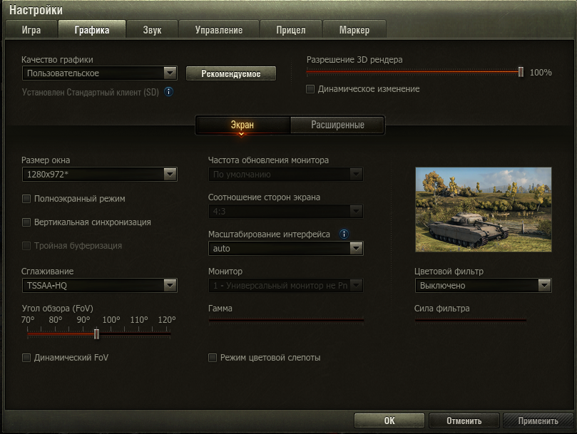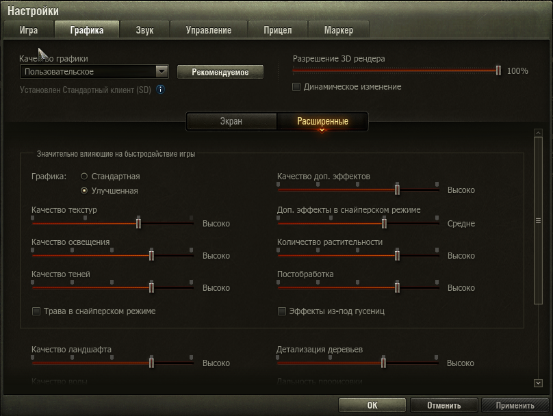 Всегда играл на высоких параметрах улучшенной графы. После обновы сегодня - графика стала чудить что то. Тормозов нет вообще - однако детализация отдалённых объектов в бою никакая. А ближних объектов делается квадратами. Даю скрин из ангара. В чём проблема подскажите? С видеокартой норм всё. Другие игры на максах идут без лагов.