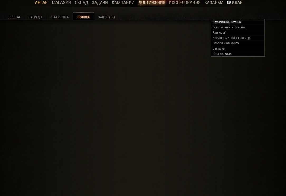 Не работает вкладка ТЕХНИКА в достижениях, пробовал всё ну или почти всё, запускал в безопасном режиме, запускал с модами без модов, удалял кэш, проверял на целостность тем инструментом что в гейм центри стоит, может есть вариант о котором я незнаю кроме полной переустановки так как инэт медленный, и при полной переустановки нужно лезть в реестр чтоб полностью удалить файлы игры или хватит стандартного уинстала или лучше через (установка удаление) А вот у других игроков я могу посмотреть это список и уменя могут Может кто нибудь знает как починить или в чем причина, неохота переустанавливать полностью да причина на первый взгляд не в файлах Кстати вот здесь в темноте насчитывается вот это список что на скрине и он работаетhttp://cdn-frm-eu.wargaming.net/wot/ru/uploads/monthly_03_2020/post-20682158-0-92704600-1585489835_thumb.jpg