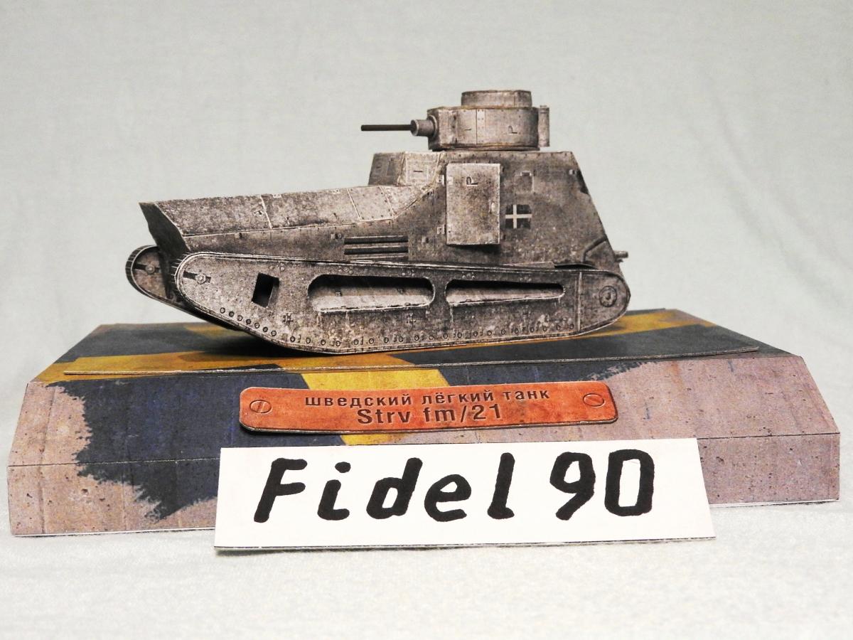 Опоздал на конкурс БК. Так что выкладываю здесь. модели "Strv fm 21 http://cdn-frm-eu.wargaming.net/wot/ru/uploads/monthly_04_2018/post-20700721-0-37054400-1522697986_thumb.jpg Ещё фото Почему ч/б фото? Потому что делал из листов напечатанных на лазерном принтере ч/б. Поэтому уже на компе убрал цветность. Захотелось посмотреть как получится из тонкой бумаги. И как сам процесс постройки из неё. Некоторые иногда пытаются и выкладывают. Оказалось гораздо труднее. Бумага тонкая, форму не держит, краска сыпется... Картону пришлось много вклеить. Из плюсов только одно - краску для торцев подбирать не надо, всё карандашом простым рисуется )) Так что если есть 100р. то лучше сходить и распечатать в ближайшую фото-контору на нормальной бумаге. ))
