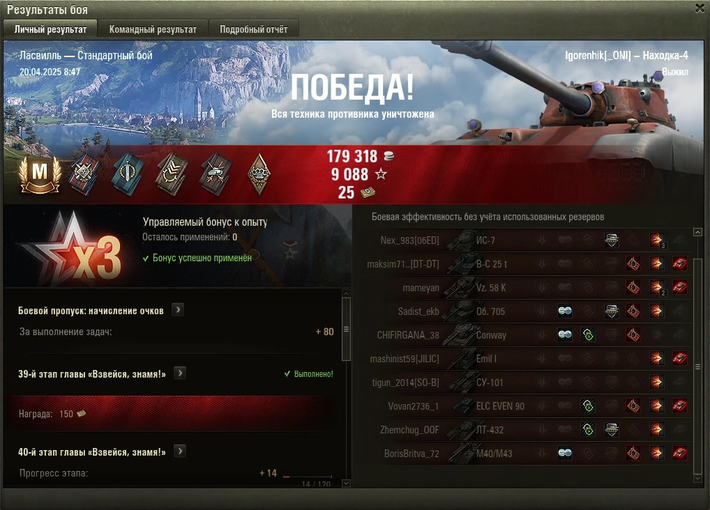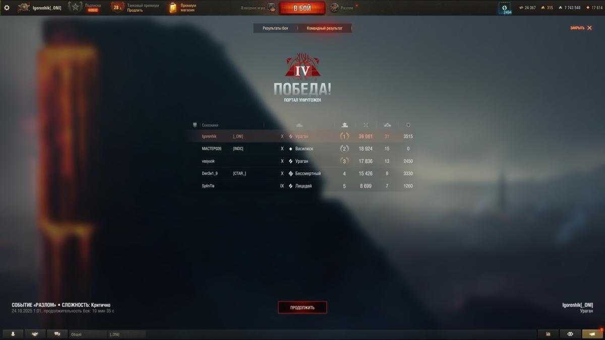 Прошел все этапы, сначала качнул бессмертный до 10 уровня, кое как закрыл три задания, сегодня качнул ураган, закрыл еще 7 заданий, ураган из этих двух однозначно топ. Из топ три по урону практически не вылезал, топ один тоже не редкость.https://forum-mt-prod.lesta.ru/monthly_10_2025/post-20728793-0-81861300-1761249542_thumb.jpg https://forum-mt-prod.lesta.ru/monthly_10_2025/post-20728793-0-52572800-1761249576_thumb.jpg