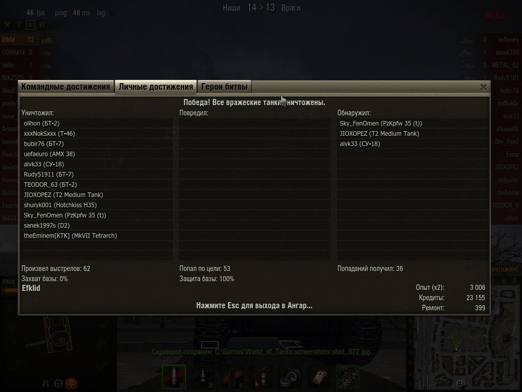 а у меня случай был. сижу в песочнице на су 26. мы с соратником по 4 фрага сняли. соратник на ст. осталось 2 неприятеля. и тут он пятого кладет. я пишу: "молоток! бери воина!" он едет к ним на базу забирать последнюю арту. я сижу в кустиках сверху смотрю, *** потягиваю. находит значит мужик ту арту и начинает последовательно разбирать. а тут глядь, выруливает унылый кустодрочер - 0 фрагов и давай в арту шмандиферить. тобишь честный почетный орден у братка отбирать. ну не мог я смотреть на беспредел такой. чо зря снаряд в стволе был чоли.... ну и засадил я в "своего гада" по самые помидоры, только колеса в разные стороны. а ратку орден достался. и остался собою я крайне доволен. вот такие дела. игрушки игрушками, а Мужиком завсегда нужно быть!!!