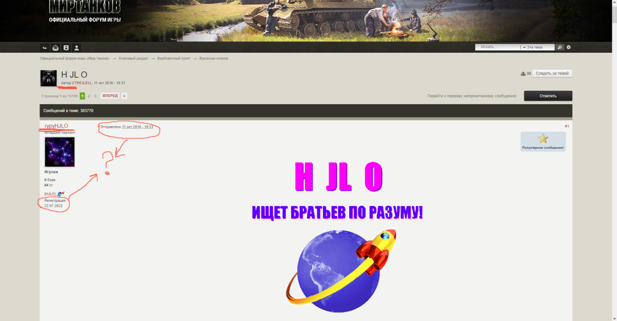 А в одной из них даже дата регистрации аккаунта автора первого сообщения темы ,отстоит на 8 лет позже , от даты размещения этого сообщения данным пользователем (я представляю себе эту картину - чел регистрируется в игре в 2022 году, отправляется в 2016-й, оставляет первое заглавное сообщение в теме созданной не им а другим пользователем ( !!!! ) и потом спокойно возвращается в 2022-й год.)