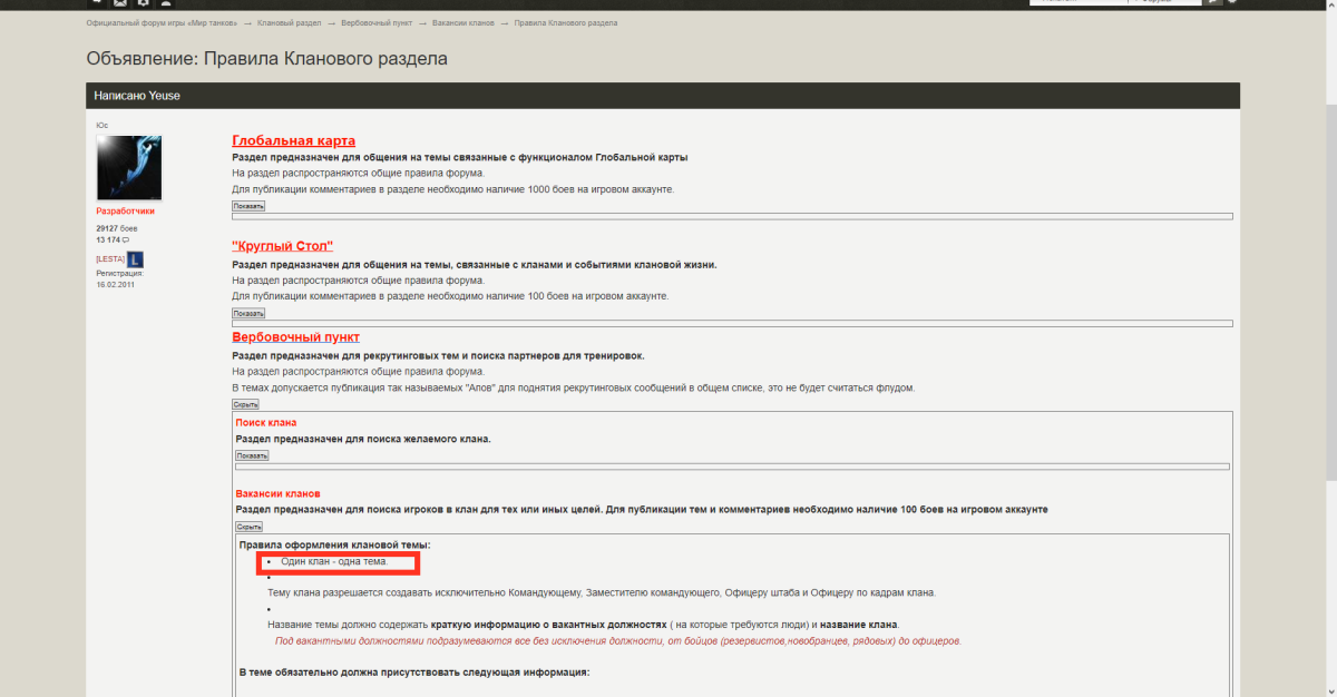 Начну с начала. Есть правила кланового раздела которые нарушать как бы нельзя, (ведь они же ПРАВИЛА) где ясно и чётко говорится - " один клан - одна рекрутинговая тема"
