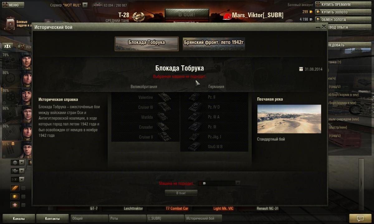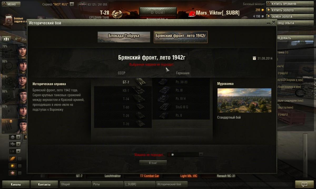 1. Если поставить галочку, может участвовать Т-28!!! НО!!!! Такой танк в историческом бою не подходит!!!!