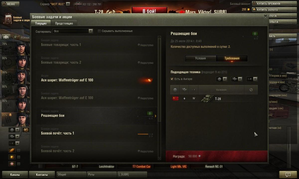3. Добрый день! Не могу понять, какая техника участвует в боевой задаче "Решающие бои"??? В разделе требования 271 машина (это на два исторических боя-то!!!) Зашел на БТ-7 - победа. Но в зачет боевой задачи не засчитано! Нет мол такой техники. В чем проблема??? P.s. Уже третий раз тему создаю, надеюсь не срежут!