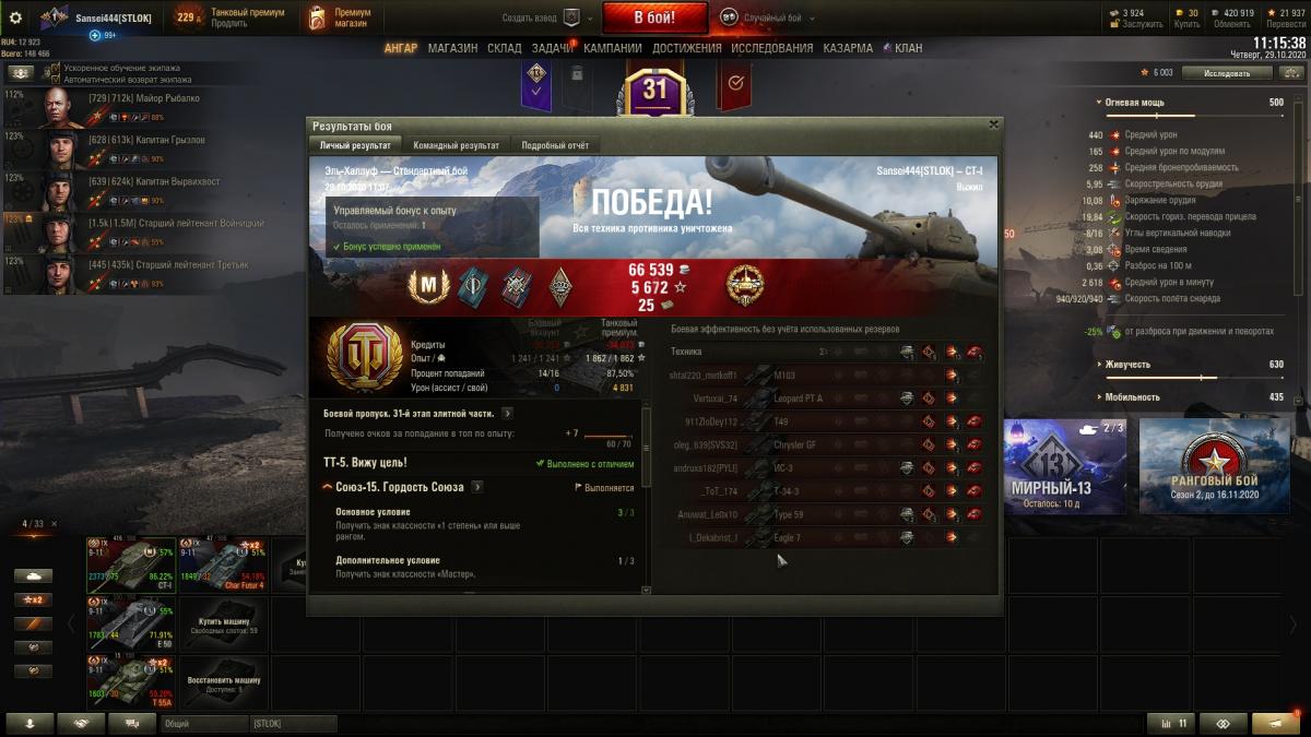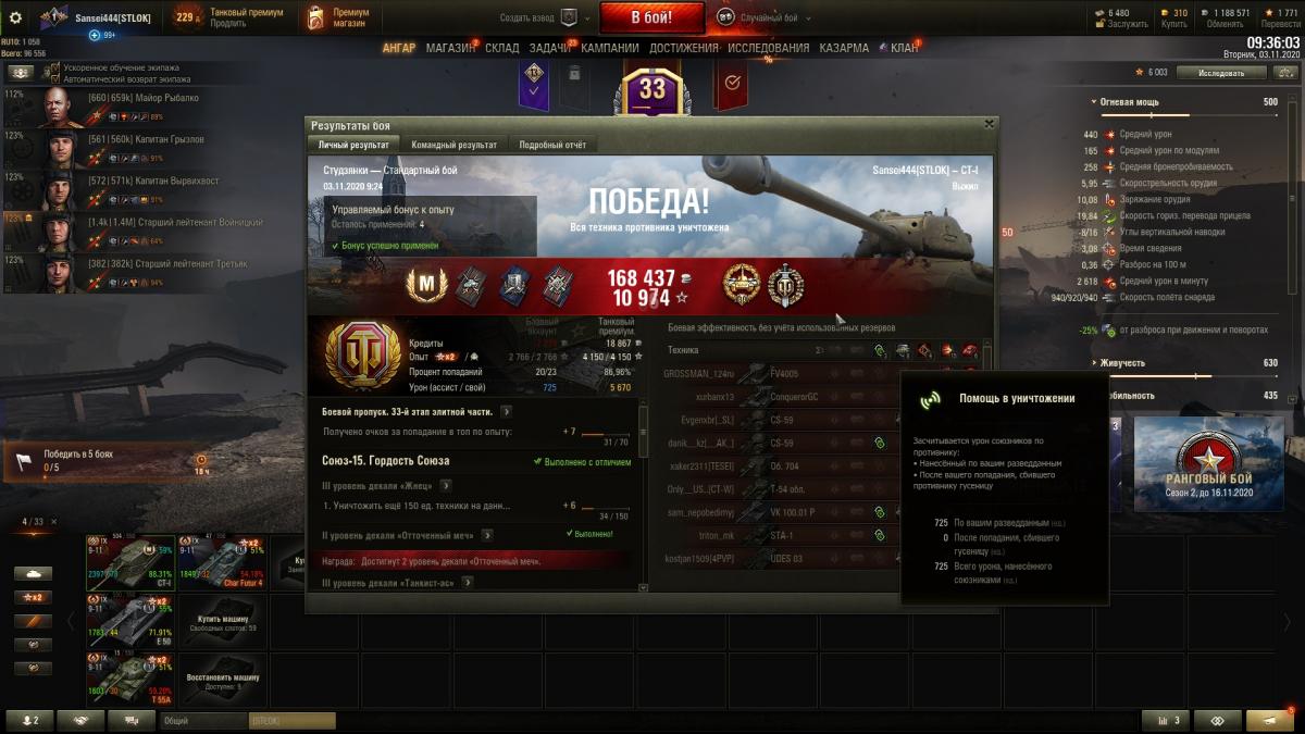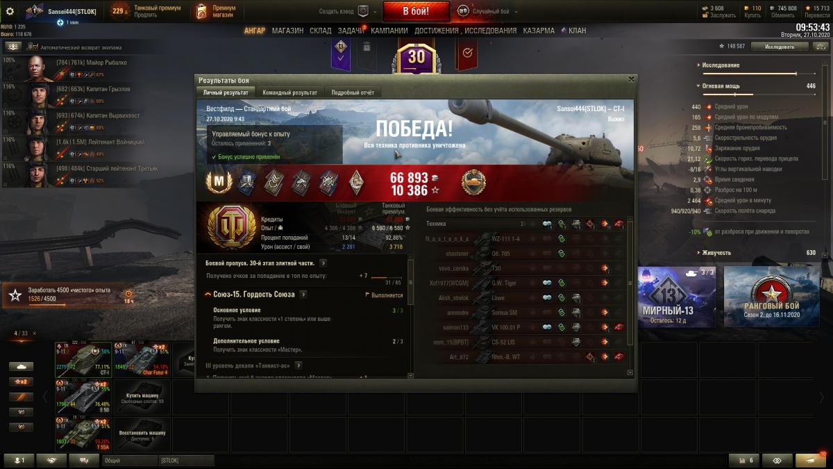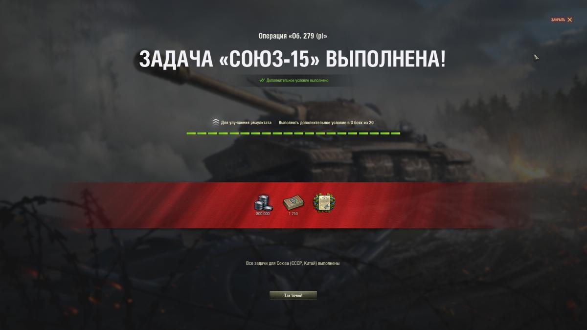 Перевыполнил СОЮЗ-15 с отличием на СТ-1, с розовым ( Вент, стаб, Досыл). с третьей попытки, танк очень хороший, низкая планка Мастера, рекомендую. Закрыл БЛОК-10, сегодня ставлю 279 в ангар, осталось БЛОК 15 без отличия сделать)