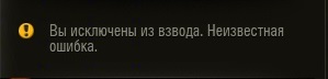 Идет бой, в самом его разгаре клиент подвисает, выкидывает в ангар и сообщением вы исключены из взвода (см. прикрепленный файл). Собственно, вопрос в названии темы. В чем проблема?