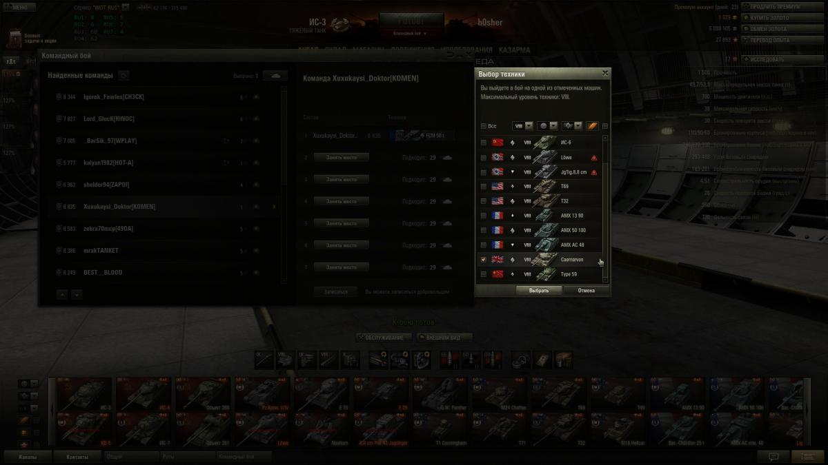 Уважаемый ГМ JegFaller, спасибо за ссылку на видео о работе балансировщика в случайном бое. В моем вопросе речь шла о командном бое, для которого актуален баланс по личному рейтингу, а не по весу техники. Что прекрасно видно при игре через прямой поиск команды. Я прекрасно понимаю, что могу создать свою команду, играть на чём угодно и набрать себе кого угодно, но это определённая ответственность как командира, которую не всегда возможно на себя взять. Имея 700 с лишним боёв и ЛР 6К+, могу утверждать, что автопоиском даже на популярных машинах я попадаю в команды со схожим ЛР процентах в 5-7 боёв.В основном это команды с ЛР 3К+ максимум. Т.е. рейтинг такой, когда игроки особо не задумываются о сетапе, ограничениях и т.п. Исключение составляет автопоиск на Т1. Его ищут многие. То есть всё выгляди как и заявлялось - на автопоиске балансировщику команд в общем-то не важен мой ЛР. Далее, прошу обратить внимание на скрин. Ограничение стоит только по Каену. Команд в поиске более, чем достаточно с рейтингом от 5К+(только в рамках одной страницы), которые могут воспользоваться автопоиском для подбора. Вопрос перефразирую так. Если ограничение стоит как на скрине, т.е. через обычный поиск я могу зайти в команду и взять Каен, то как будет при автопоиске для этой команды? То есть, когда командир увидит меня с моим Каеном, где я буду находиться в своем игровом клиенте - в окне отсчёта времени в очереди или уже на окне штата команды?