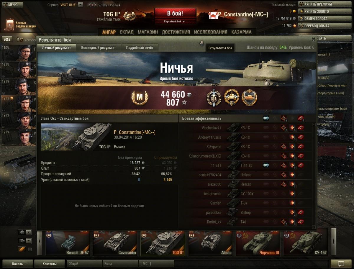 alexffoxx, ну я аж покраснел Целесообразности-то может и нет, а интерес есть Это как заново брать какую-то высоту - ТОГ я покупал три раза (само собой, на 3 разных аккаунтах), и всегда брал экипаж не за голд, а "от сохи". Как было раньше - уже не помню, а на EU-сервере за 70 игр (вчера и сегодня) довёл командира до 95% и купил два обвеса. Ну и да, 1200 голды не лишние, а я хочу играть, а не акций ждать.