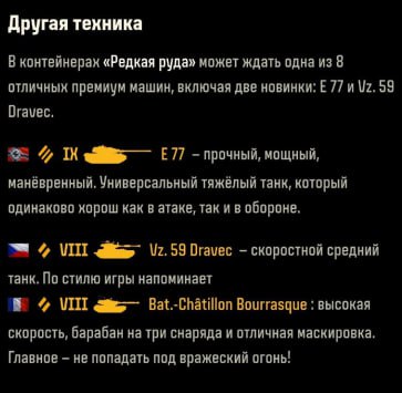 этих премов - хоть опой жуй. Люди уже выдумывают себе причины покупать их ----типо коллекционер, иМба, выпало с сундучка. Я недумаю что МТ делает ставку на продажу премов. Лудомания - вот доход. Вот какая им разница на каком я лвл играю? Если бы что то редкое выпадало с сундуков и для песка - я бы лудоманил. Но не такого кастрированого ПЕСКА как тут с ботами. с Урезаными слотами и картами. А так для чего - мне нынешние сундуки? для премов 8-9 которых выжигает огнепых? Так у меня итак премов до грязи. Охота вот лично мне играть на историчных танках КВ, т34, Тигр. Да тот же МС1 А 8-11 превратилось в эльфизм прости меня господи. А песок и мидл это боты и 3 карты. И да новых игроков нет (почти). - есть твинководы и любители лоу лвл.