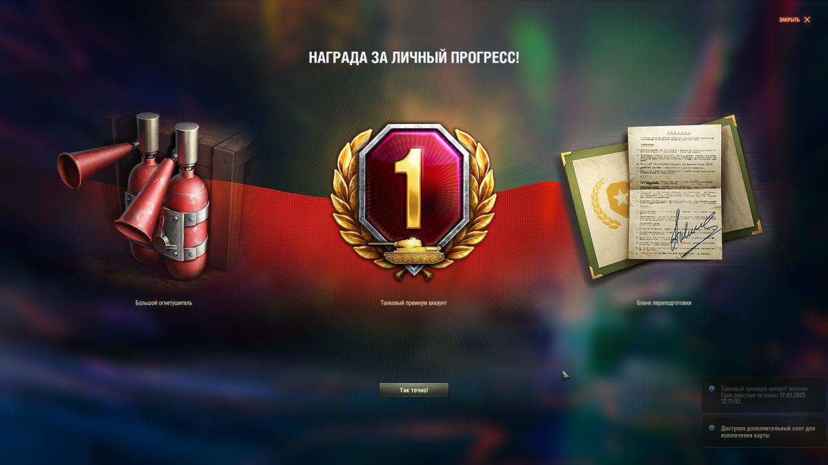 Ну от части Вы правы, но уже несколько надоедает постоянно "готовить" технику перед боем, пересаживая экипаж туда/сюда. Ну да ладно, не критично, будем честны, но будто бы "мои мысли" насчет "кол-ва нового экипажа" в прогрессии звучат довольно логичны. Сколько танков, столько и новых членов. Хотя бы под 11-ые уровни, там же еще в прогрессии по одному танку 8-9-10 уровня, про них даже и речи не веду. А отвечая на Ваш вопрос по поводу наград: будем честны, чтобы я не предложил, это уже никак на релиз не повлияет. Но, например, на этих уровнях прогрессии я бы мог дополнительно предложить награду в виде трофейного, либо усовершенствованого оборудования на выбор. Как раз игрок бы "собрал" 2/3 оборудования под каждый 11 уровень. Мне кажется это отличной идеей. Ну лично мой взгляд. Но вот не считаете ли Вы, что сама прогрессия наград выглядит несколько странно: на 1-ом уровне я получаю танк, экипаж и стиль, а на 9-том я получаю лишь экипаж и стиль. Я беру даже во внимание, что кол-во очков для каждого уровня фиксированное, т.е. по сути каждый уровень имеет одинаковую ценность и это намекает на то, что награды с каждым уровнем "не должны" увеличиваться, с этим согласен, но тогда бы и "ценность каждого сброса" привести бы к одной некой значимости.