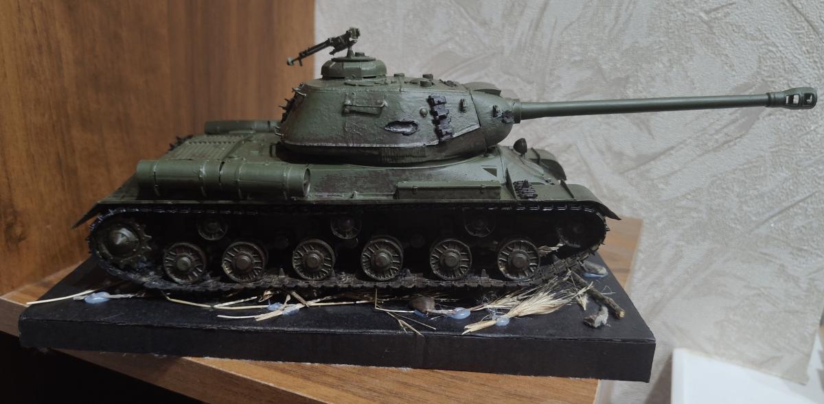 1. https://forum-mt-prod.lesta.ru/monthly_07_2025/post-213805010-0-15248600-1752953003_thumb.jpghttps://forum-mt-prod.lesta.ru/monthly_07_2025/post-213805010-0-48650000-1752953011_thumb.jpghttps://forum-mt-prod.lesta.ru/monthly_07_2025/post-213805010-0-12274200-1752953021_thumb.jpghttps://forum-mt-prod.lesta.ru/monthly_07_2025/post-213805010-0-56705900-1752953031_thumb.jpghttps://forum-mt-prod.lesta.ru/monthly_07_2025/post-213805010-0-51266600-1752953040_thumb.jpghttps://forum-mt-prod.lesta.ru/monthly_07_2025/post-213805010-0-89499200-1752953050_thumb.jpgМодель танка ИС-2 из пластмассы от фирмы "Звезда" в масштабе 1/35. Длинна с орудием/без 19см и 27.5см соответственно. Сборка и покраска модели заняла более 15 часов. На поверхность наложено около 10 слоев краски. Танк представлен со сбитой левой гусеницей и пятью рикошетами: "Подбит, но не сломлен".
