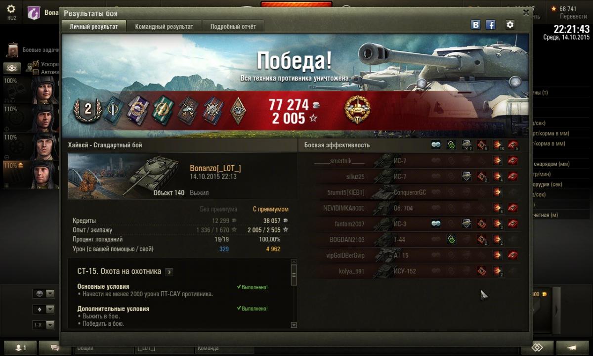 Нифига у меня не получается СТ-15 выполнить... хоть что делай... Ну нету ПТ в бою ну нееету... Да если и появляются то это вафли которые как только засветятся сразу в ангар уходят... играю на Т-54 и Обьекте 140 за две недели... ни более 3 ПТ в бою, вот как вы прошли ммм? Неужели технику придется ещё под лбз выкачивать.... уфф...