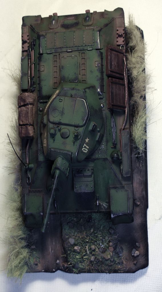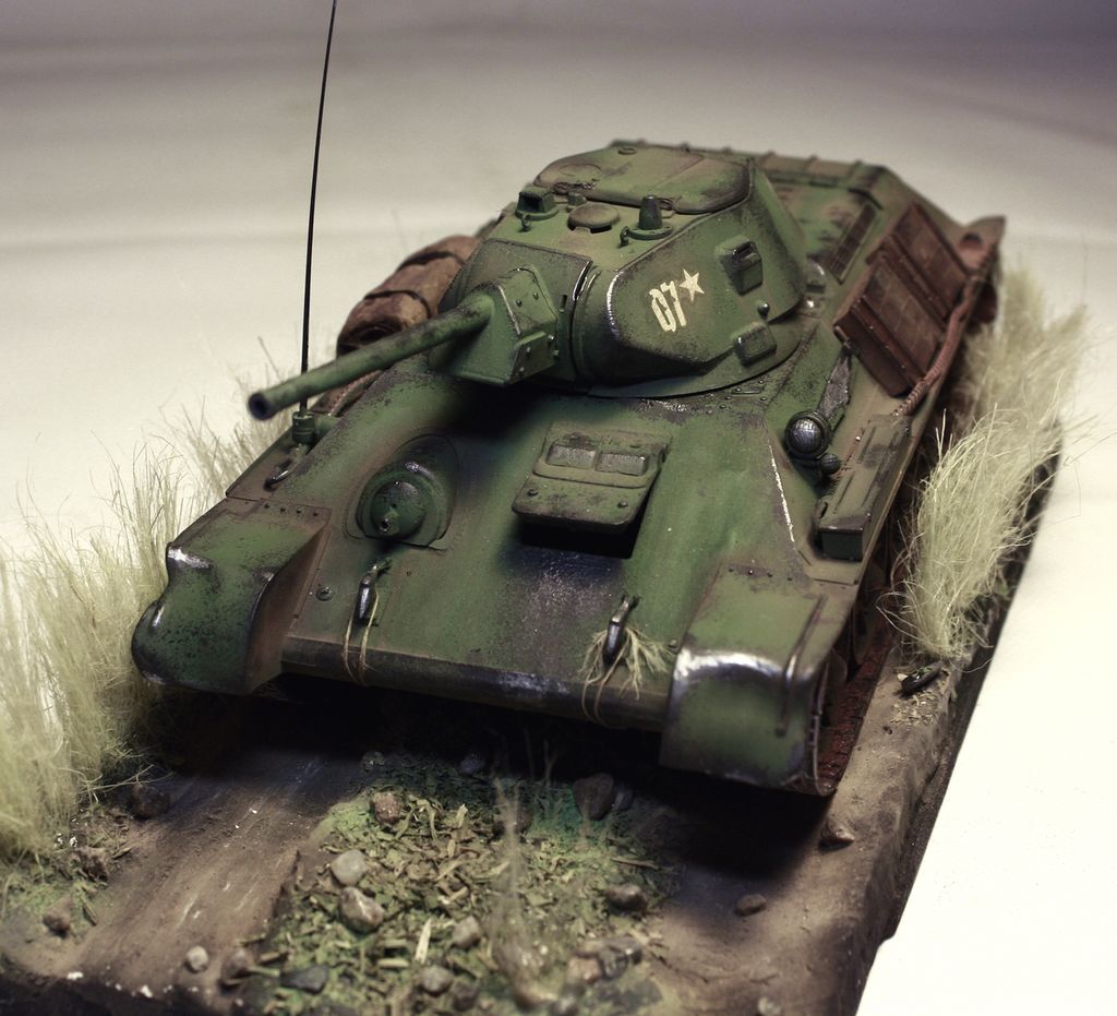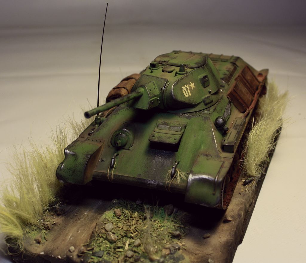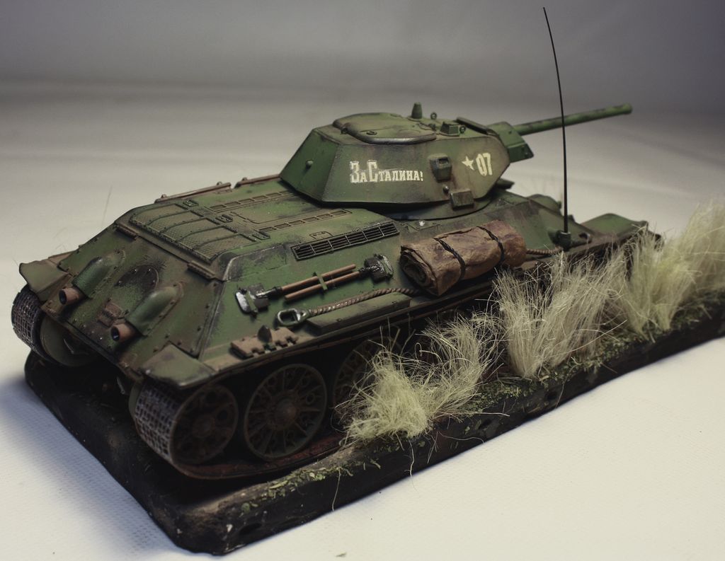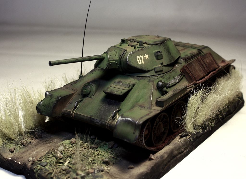 впервые в жизни взялся за сборку модели.и вот что вышло.модель мне подарили.фирма "моделист".скажу я вам какая то хреновая фирма если четно то.но да ладно.дареному коню....долго она валялась собранная только корпус и башня и вот решил доделать.красил самыми дешевыми акриловыми красками от звезды.где то кисточками,где то аэрографом.для создания эффектов использовал пастельные мелки.для диорамы-фанеру,гипс,камешки на улице подобрал.ну вот в общем и все.для справки использовал энциклопедию М.Барятинкого.я знаю что модель ранняя и есть некоторые недочеты возможно в комплектации или цветовом решении.но я на данный момент доволен. всем спасибо так значит.прочитал ваши темы уважаемый gralexxl по фотографированию и постобработке.перефоткал свою работу