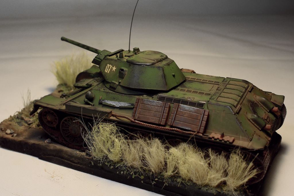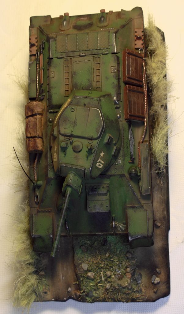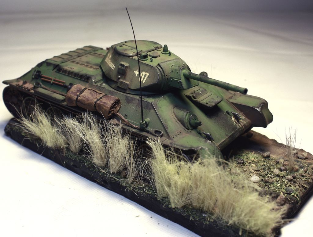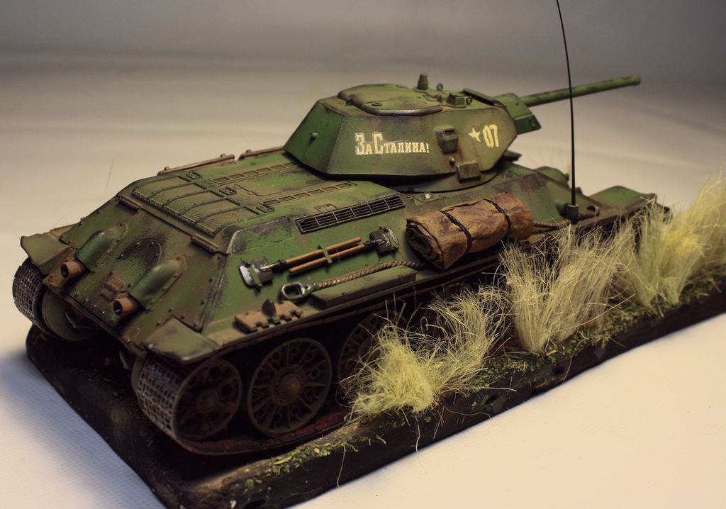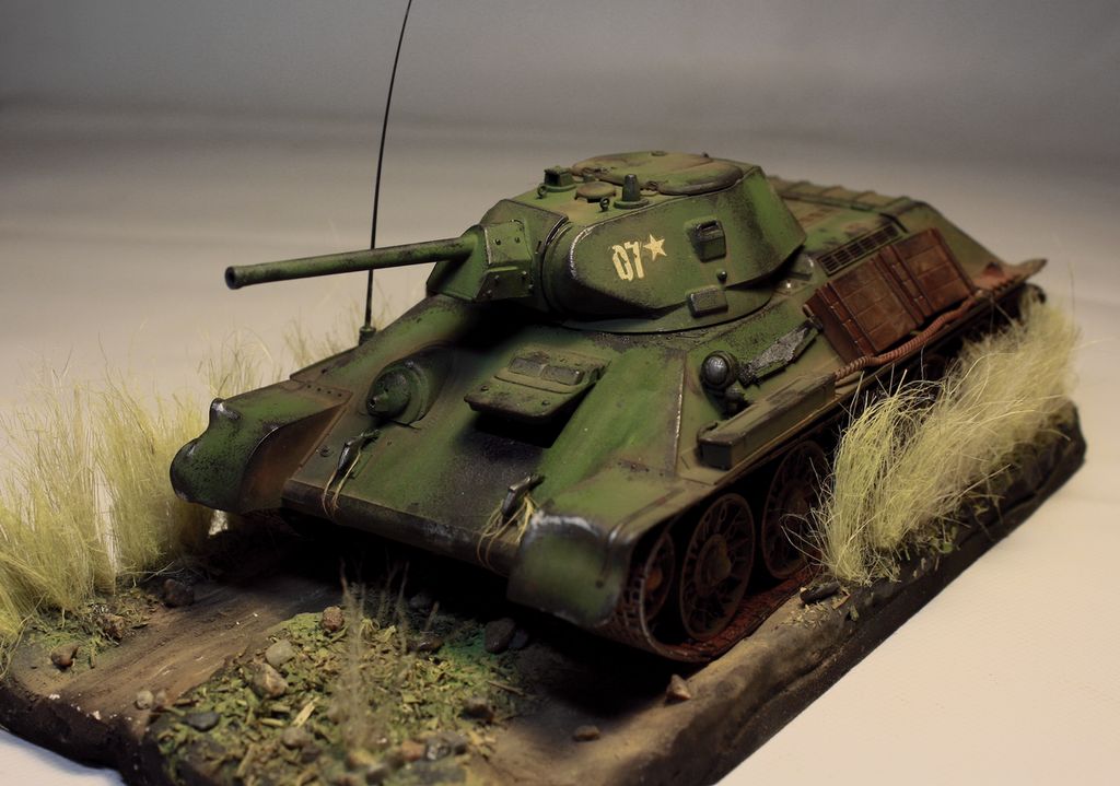 впервые в жизни взялся за сборку модели.и вот что вышло.модель мне подарили.фирма "моделист".скажу я вам какая то хреновая фирма если четно то.но да ладно.дареному коню....долго она валялась собранная только корпус и башня и вот решил доделать.красил самыми дешевыми акриловыми красками от звезды.где то кисточками,где то аэрографом.для создания эффектов использовал пастельные мелки.для диорамы-фанеру,гипс,камешки на улице подобрал.ну вот в общем и все.для справки использовал энциклопедию М.Барятинкого.я знаю что модель ранняя и есть некоторые недочеты возможно в комплектации или цветовом решении.но я на данный момент доволен. всем спасибо так значит.прочитал ваши темы уважаемый gralexxl по фотографированию и постобработке.перефоткал свою работу